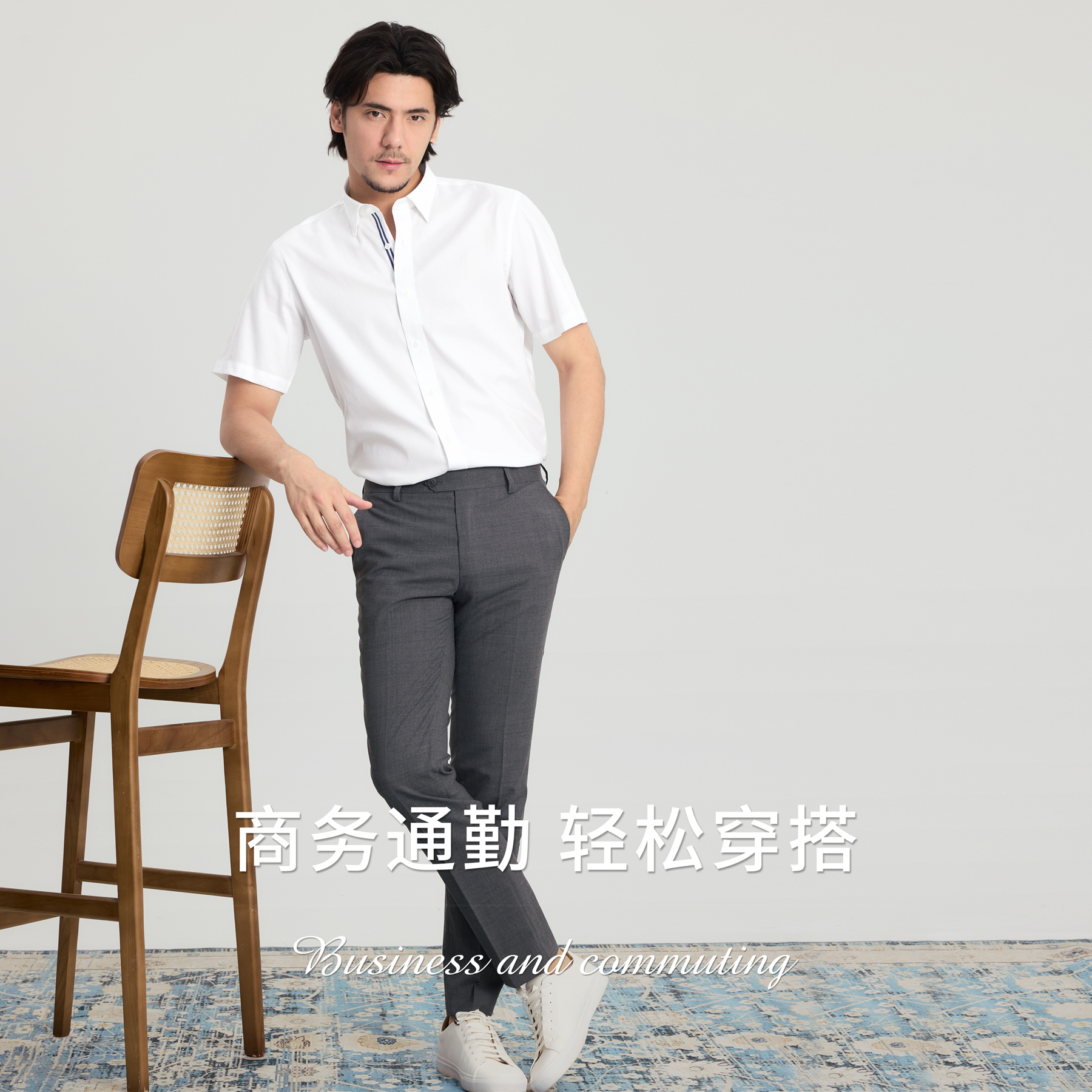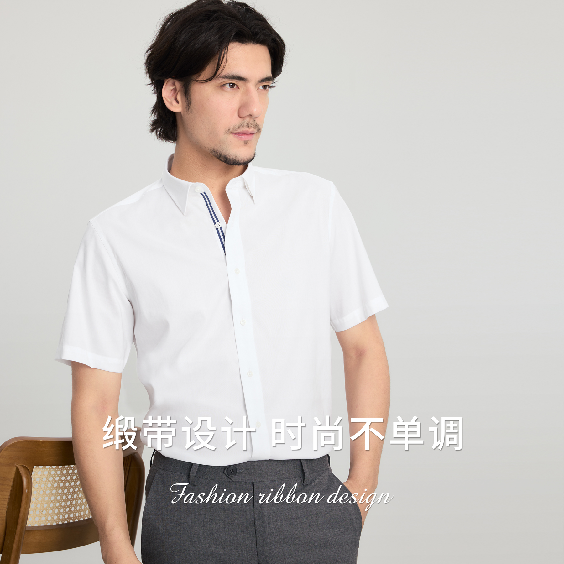 白衬衫男高级感痞帅短袖修身商务休闲拼接门襟衬衣莱赛尔冰感夏装