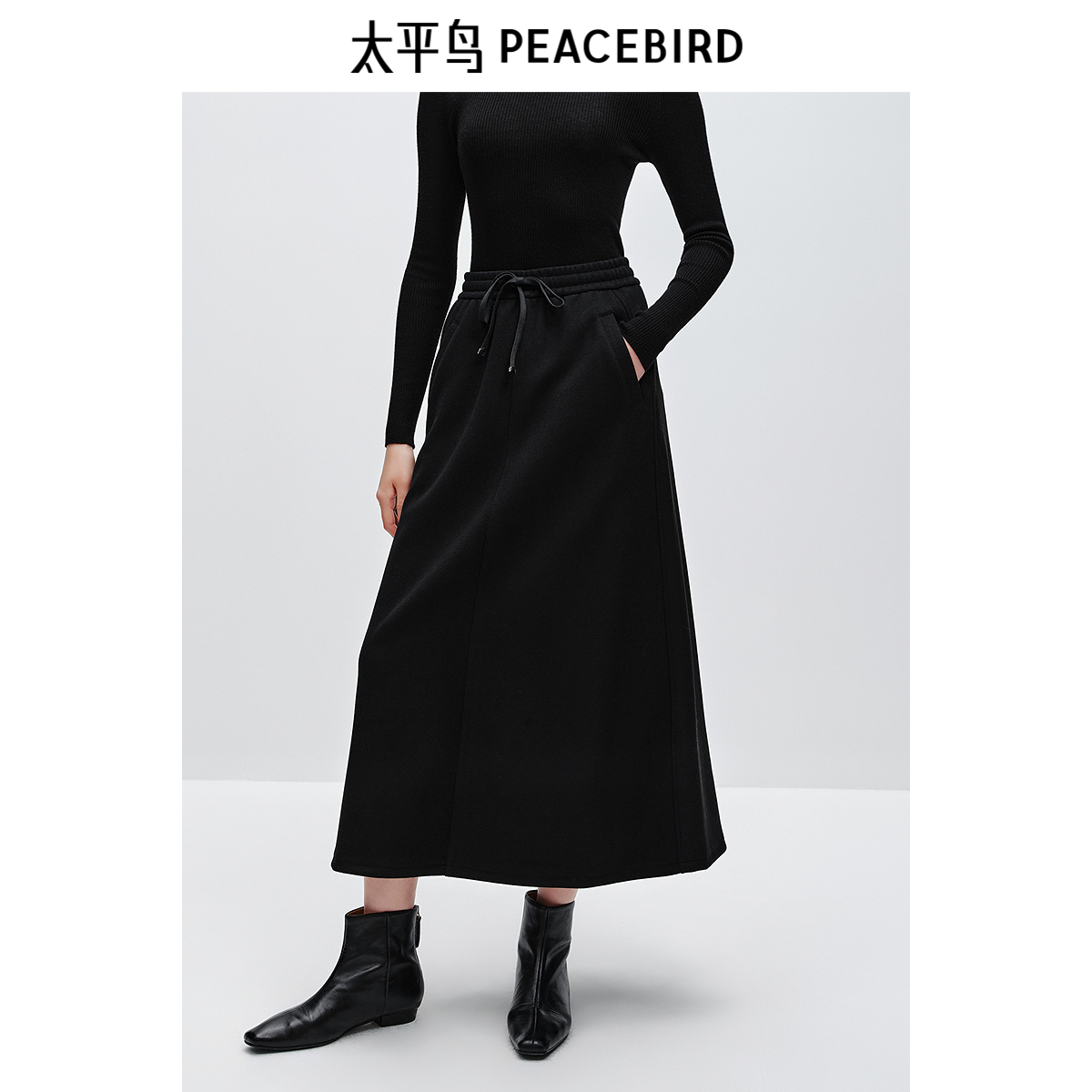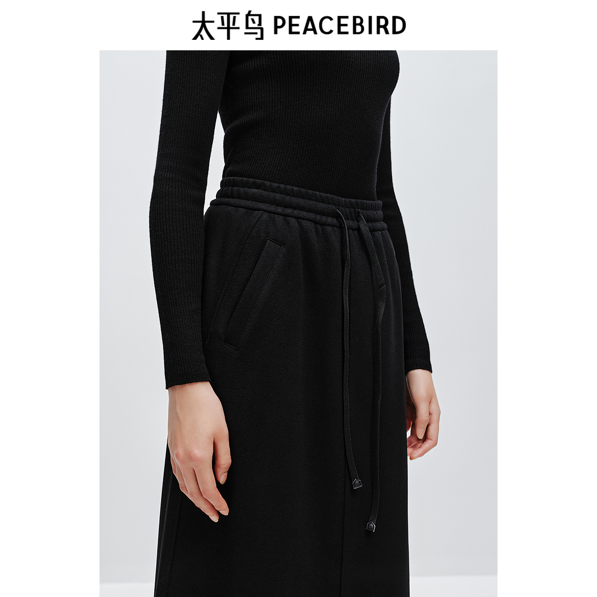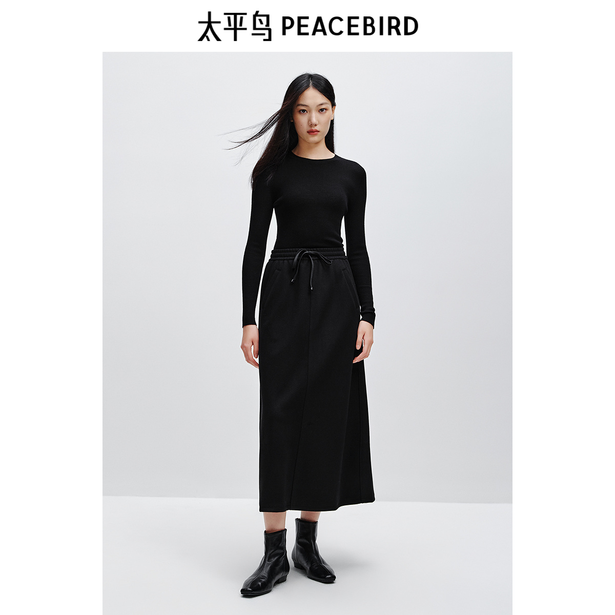 太平鸟 女士中长款针织半身裙冬季新款运动可抽绳拼接设计裙子