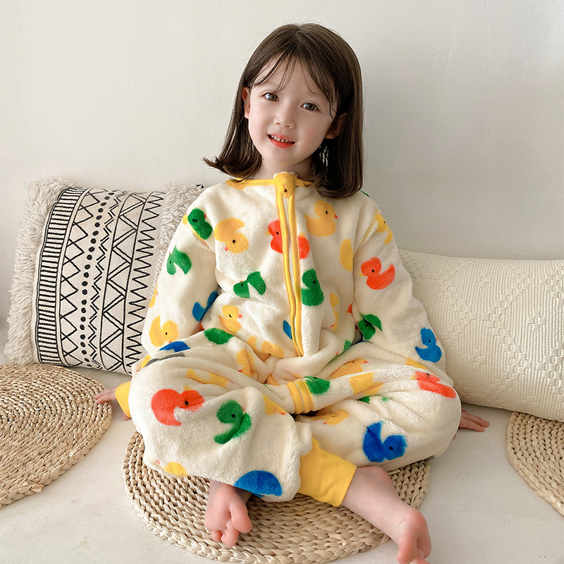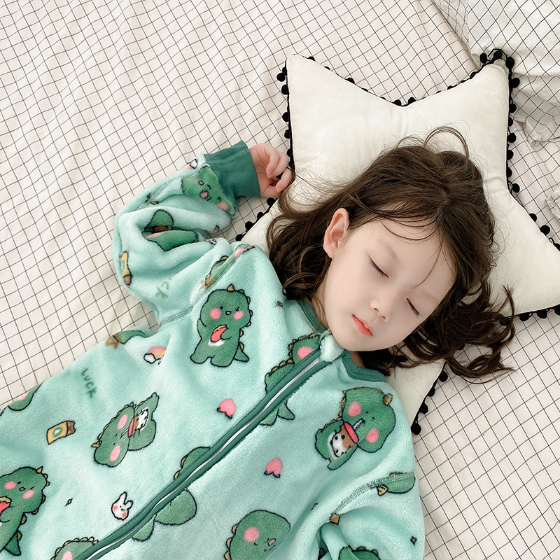 婴儿睡袋秋冬款宝宝睡衣女童男童加绒加厚珊瑚绒法兰绒儿童防踢被