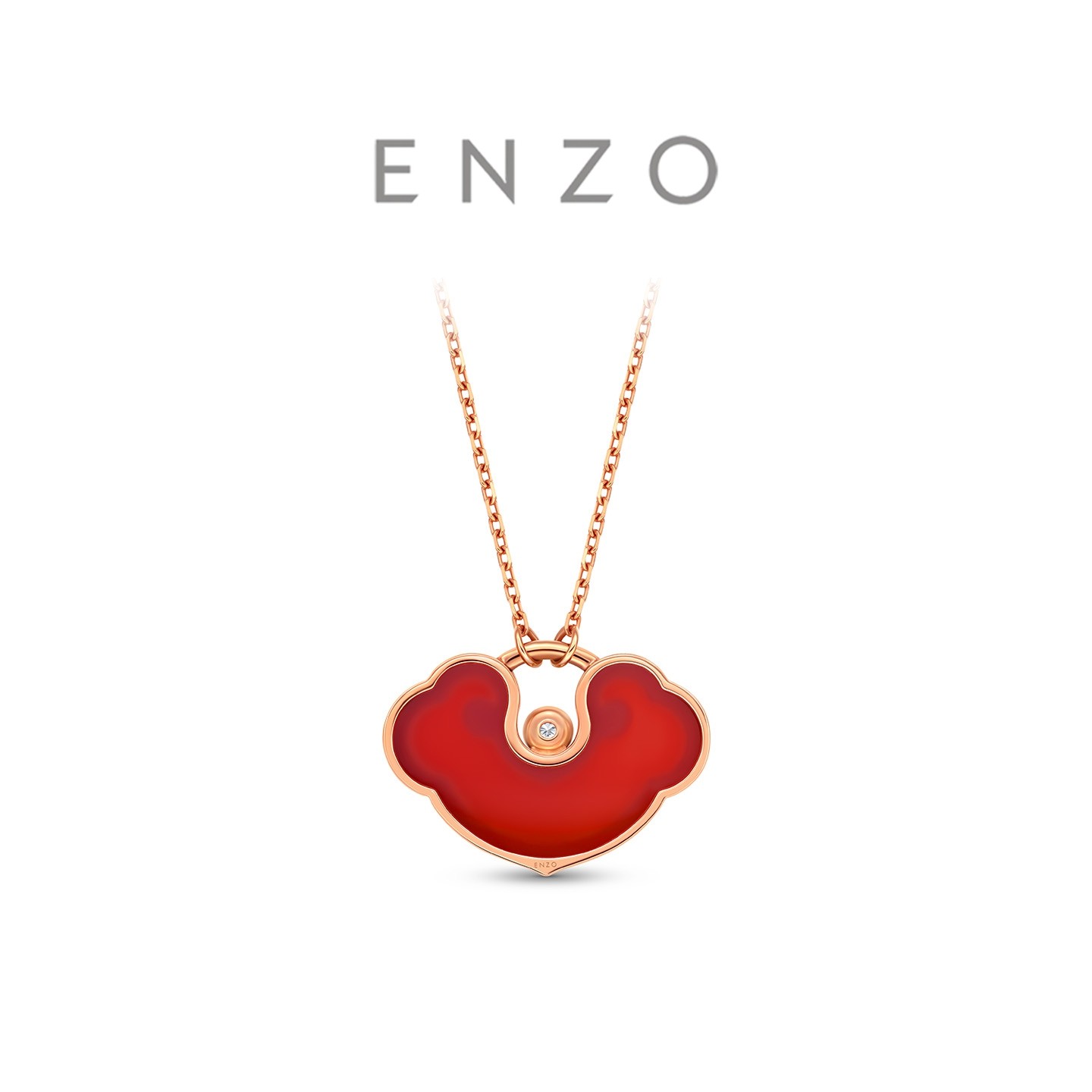 周大福ENZO 大版如意锁18K金红玉髓钻石项链女 EZV8178悦己送礼