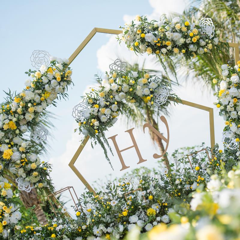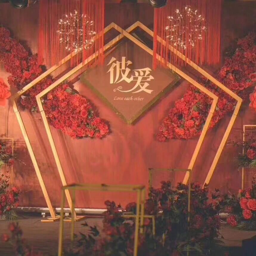 新款婚庆铁艺拱门几何菱形拱门 森系舞台背景装饰道具五边形架子