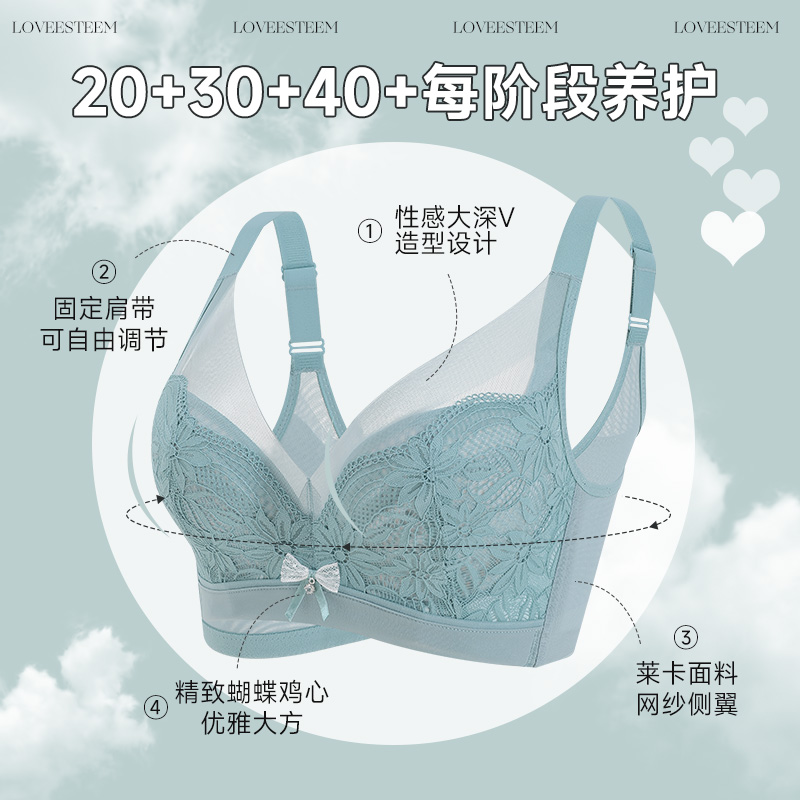 爱黛法式大胸显小胸内衣女圆盘胸薄款全罩杯收副乳聚拢防下垂文胸