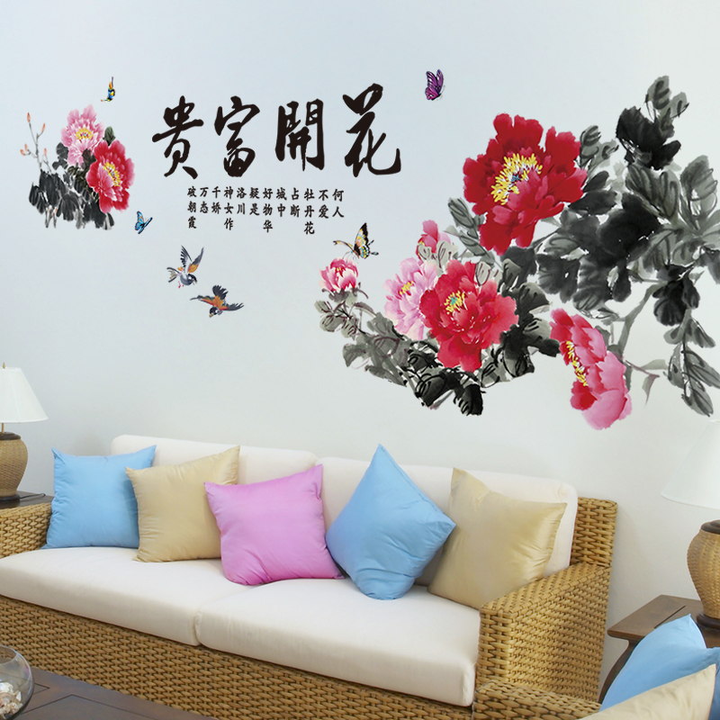 自粘创意贴纸背景墙壁贴纸防水墙贴画卧室客厅温馨花开富贵墙壁画