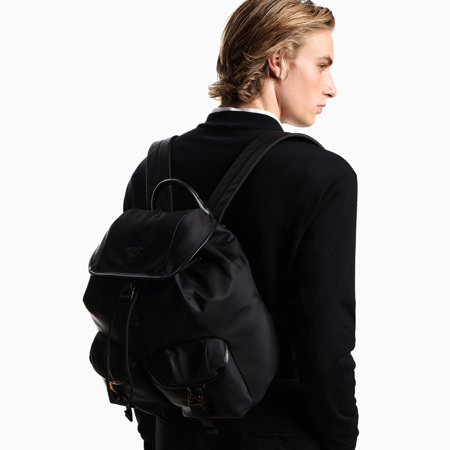 阿玛尼男士抽绳休闲手提双肩包