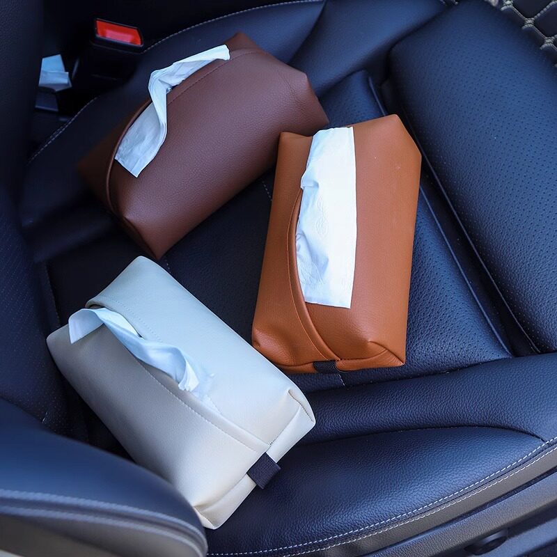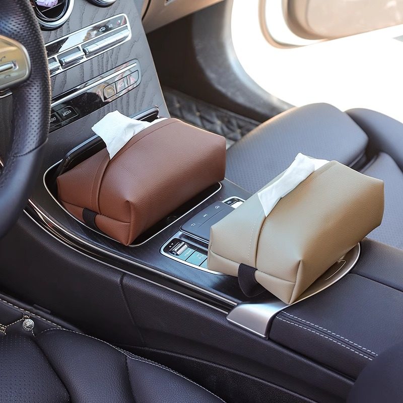 荔枝纹超纤皮轻奢车载纸巾盒挂式绑带车内抽纸盒扶手箱椅背纸巾袋