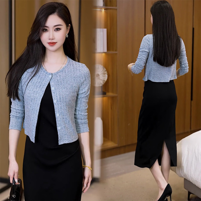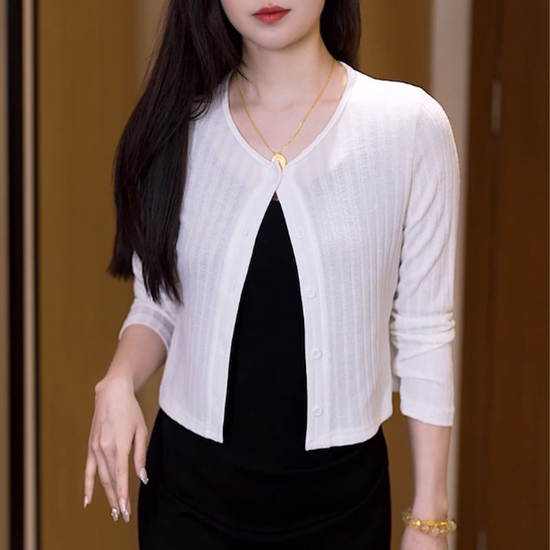 纯色修身外搭短款小开衫针织薄款上衣短款百搭披肩配吊带裙的外套
