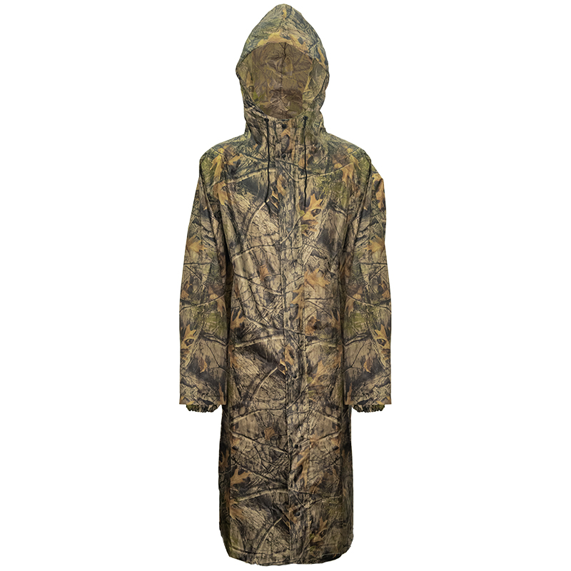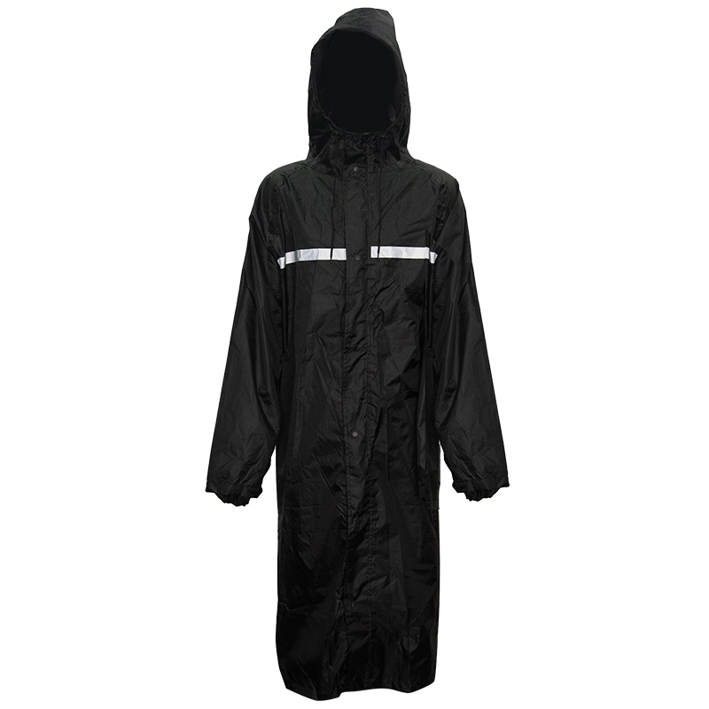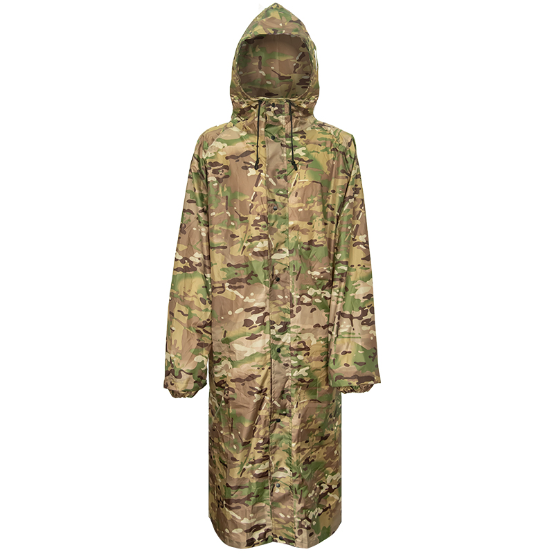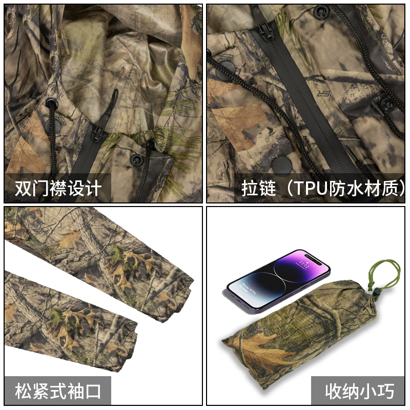 厂家防雨防水风衣迷彩徒步成人连体雨衣PU涤纶户外反光条雨衣长款