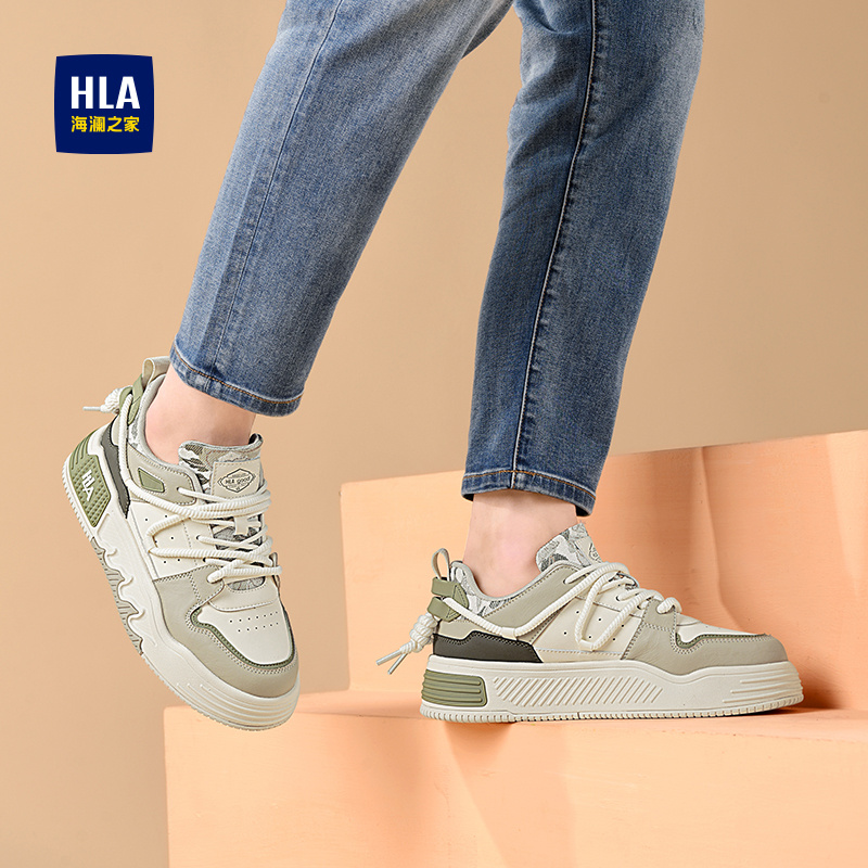 HLA/海澜之家男鞋新款秋季潮流百搭拼接板鞋男士休闲鞋耐磨增高