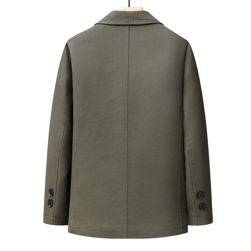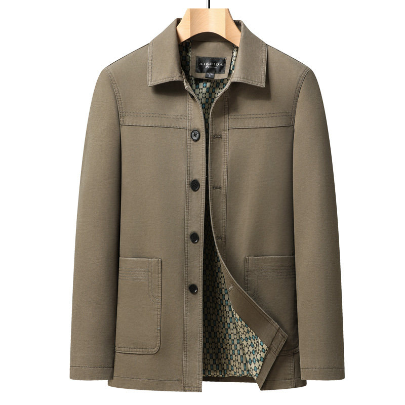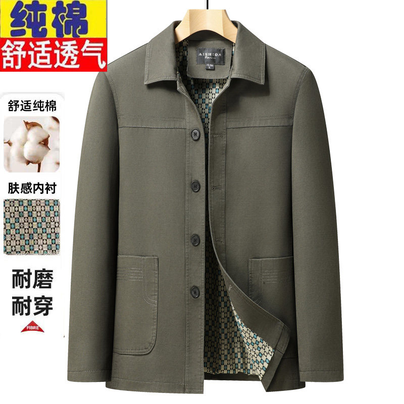 中老年男士全棉风衣夹克春秋外套爸爸装翻领带扣子宽松大码中山装