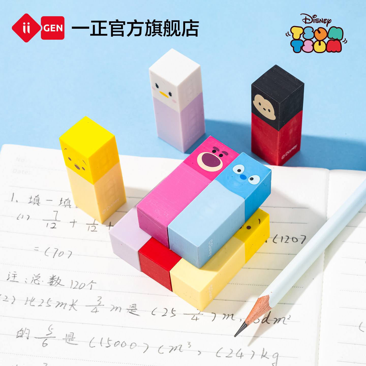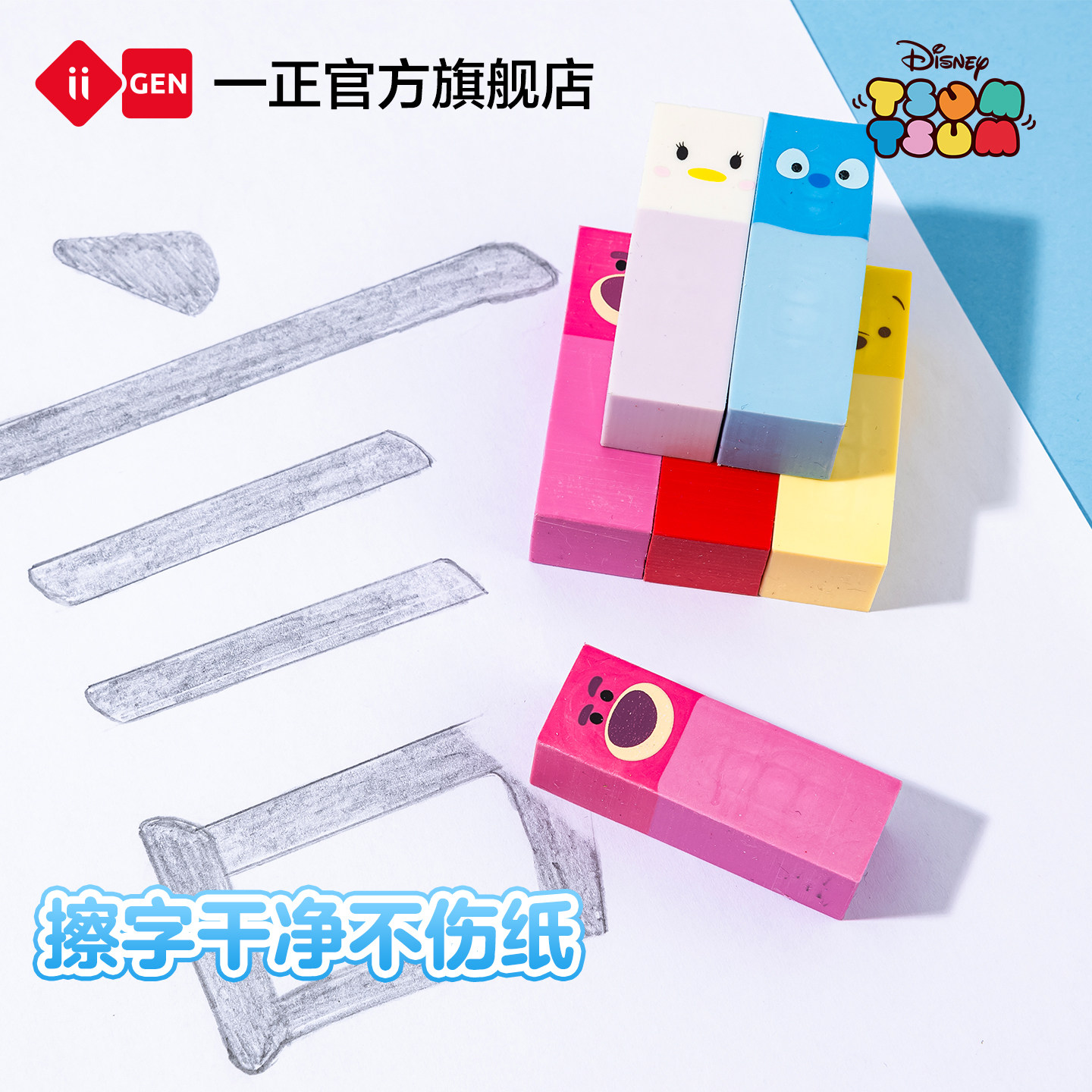 一正松松家族小学生趣味卡通史迪奇彩色橡皮擦 儿童可爱迪士尼橡皮擦字干净少碎屑幼儿园草莓熊方形橡皮擦