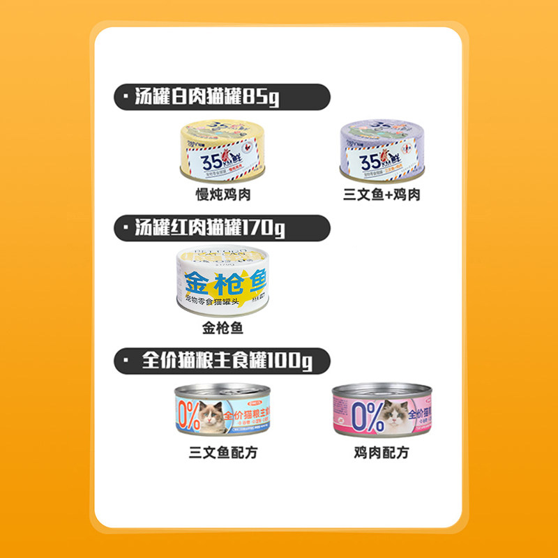 金枪鱼猫罐头幼猫成猫咪湿粮零食金枪鱼白肉鸡肉三文鱼12/24罐