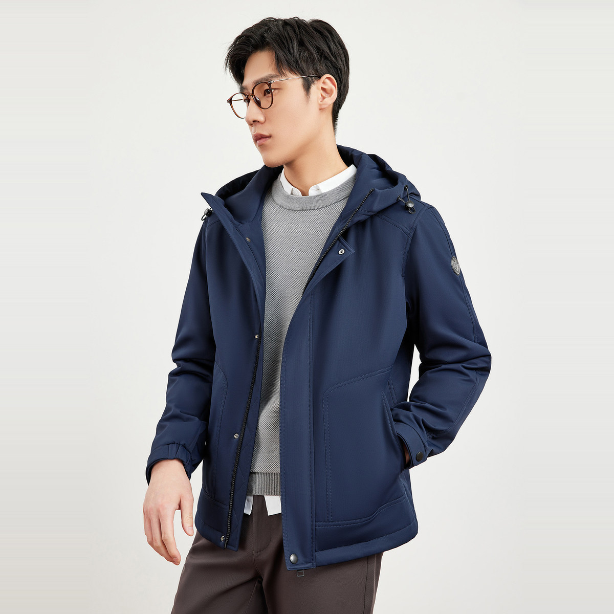 七匹狼黑科技保暖连帽棉服夹克男