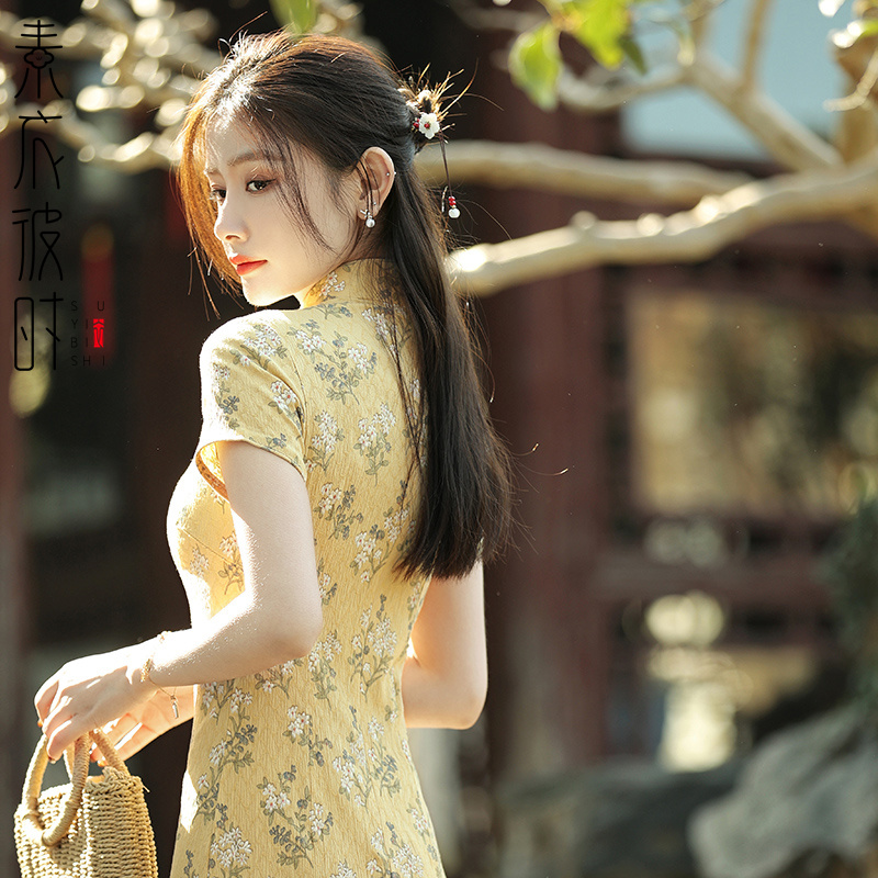 素衣彼时夏季女装短袖旗袍裙1:1裁剪图中国风连衣裙手工diy纸样板