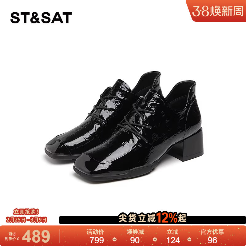 星期六2026新款真皮粗跟小皮鞋女