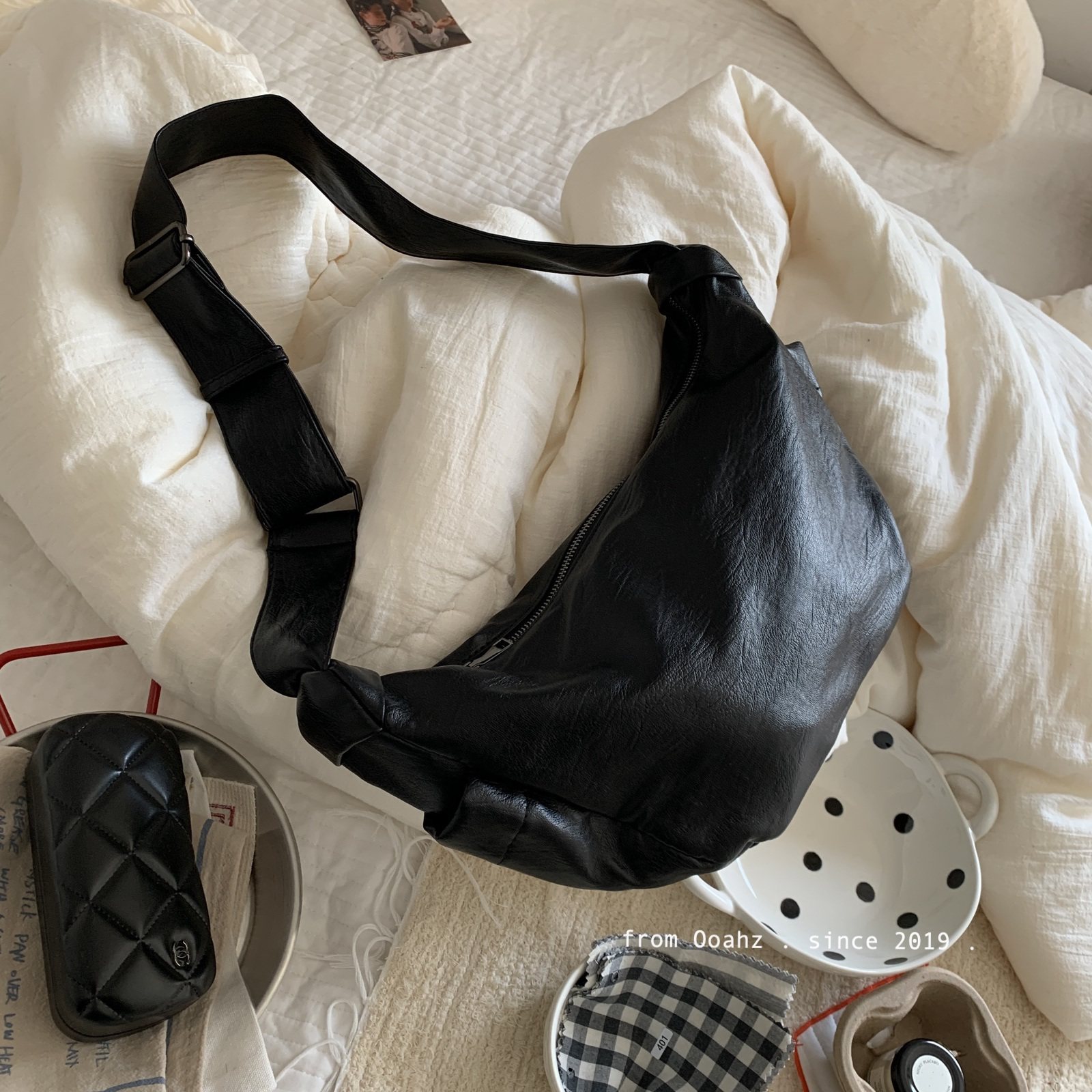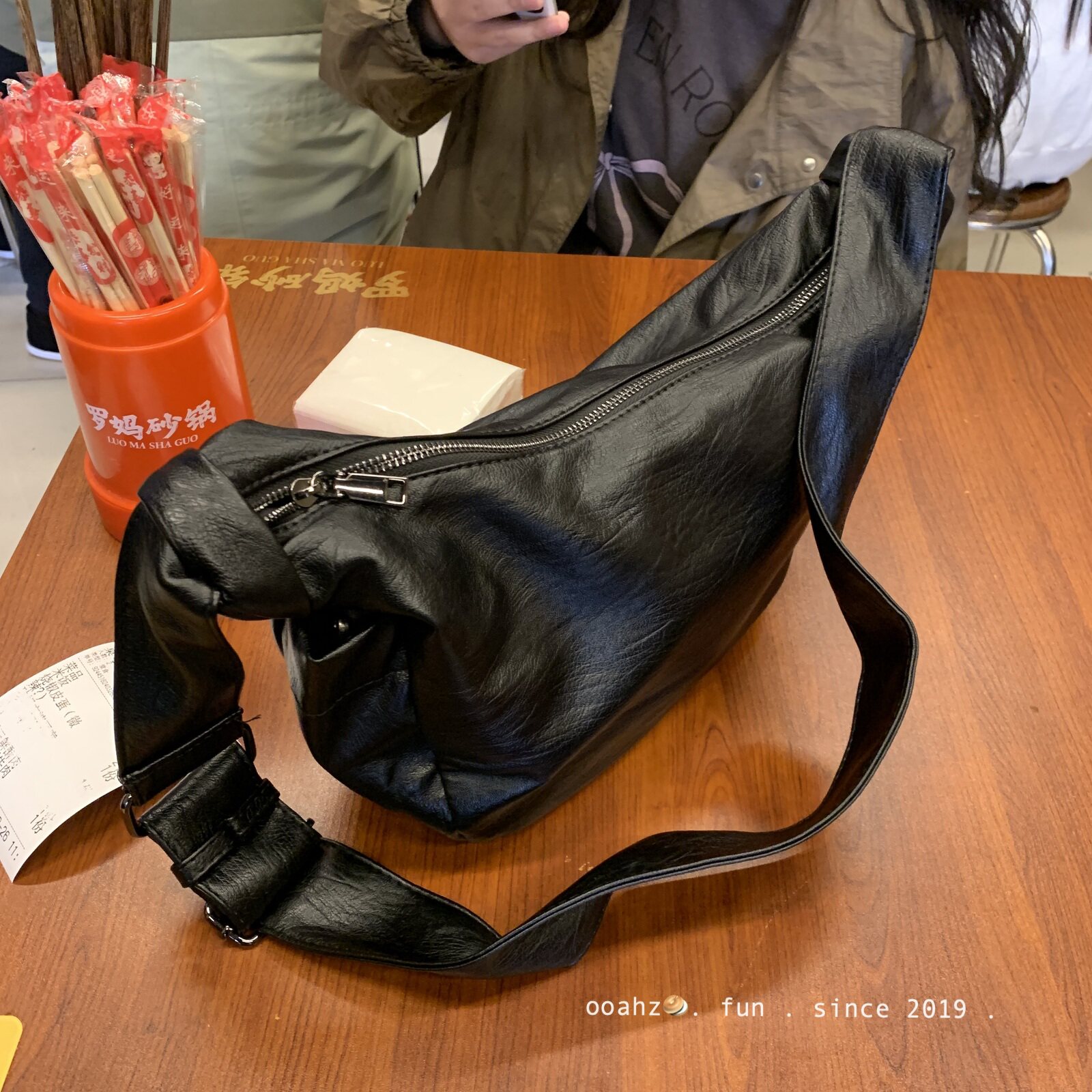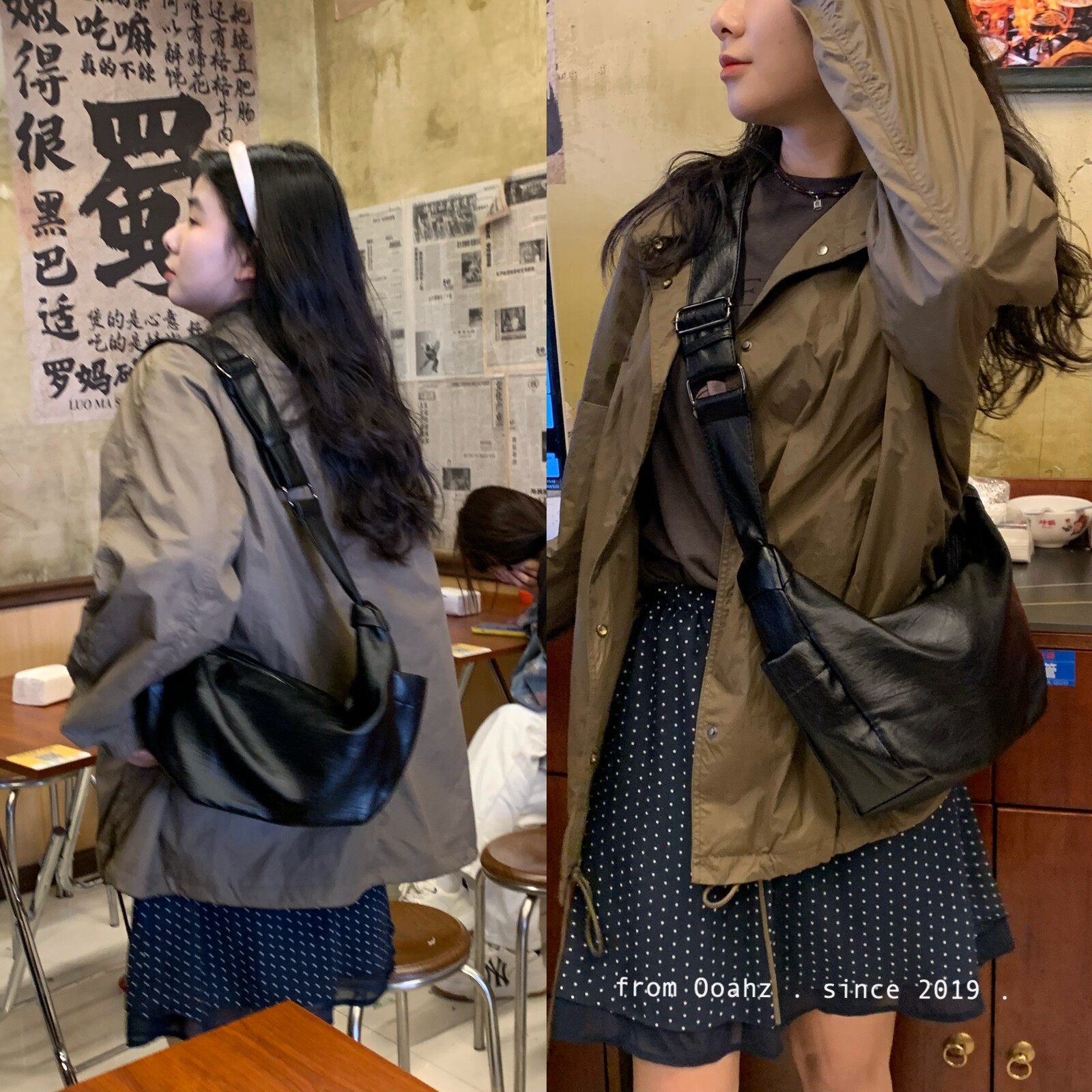 狠狠爱住!媲美真皮的饺子包~复古皮纹斜跨包 PU软皮高品质单肩包