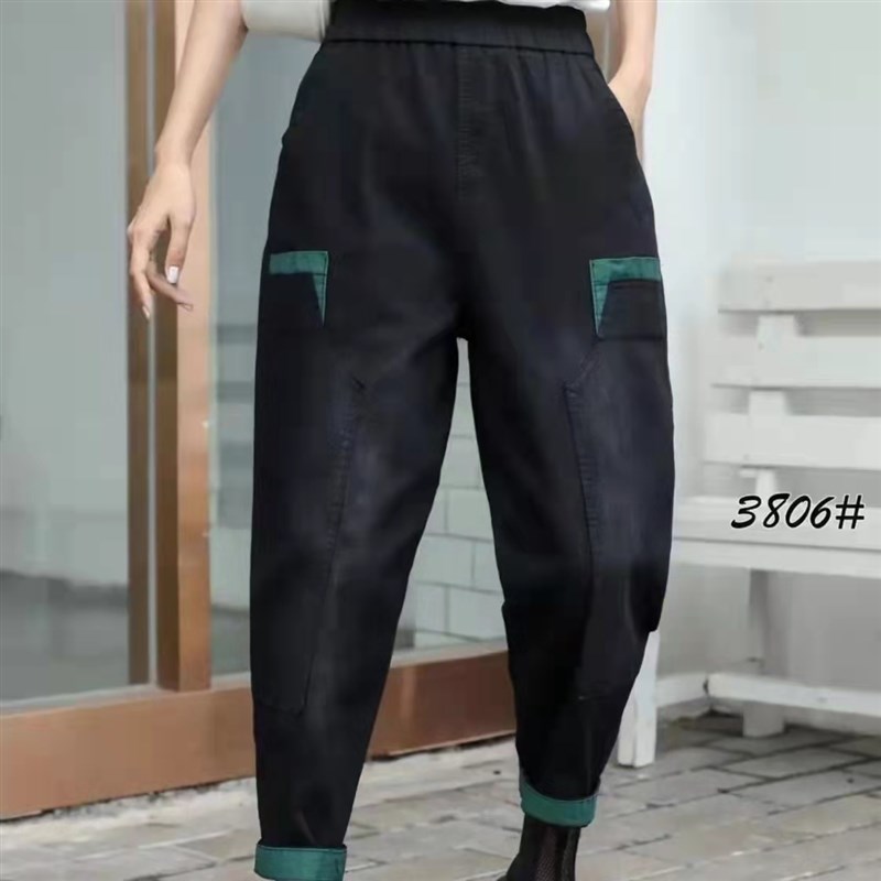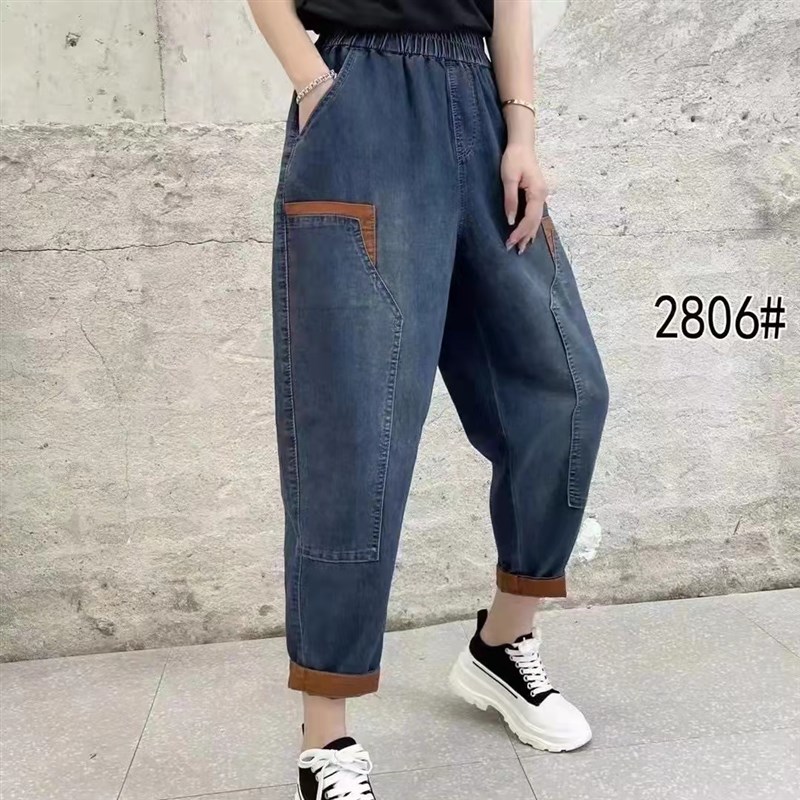 牛仔裤女2024年新款宽松休闲哈伦裤松紧腰夏季薄款裤子洋气九分裤