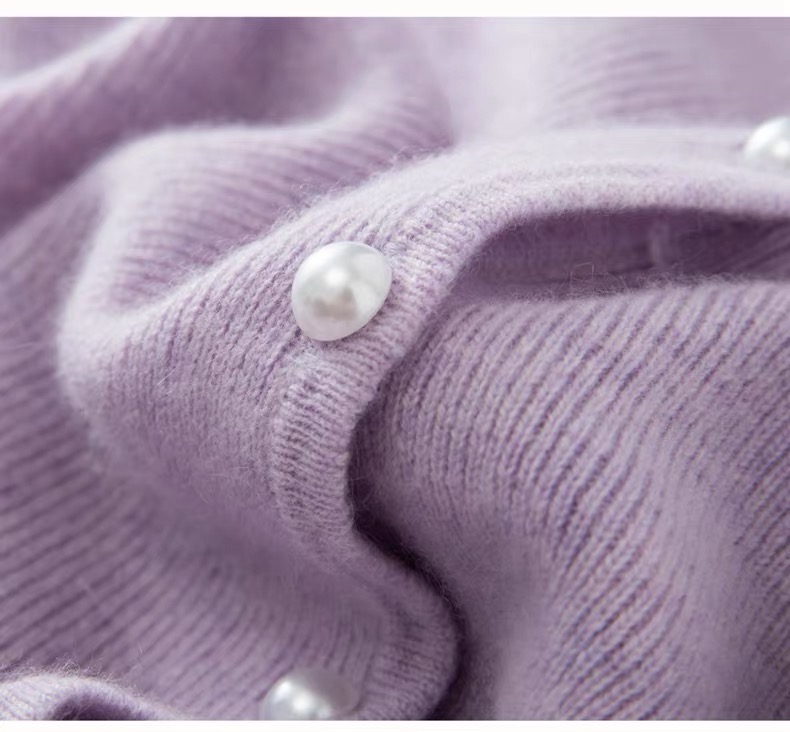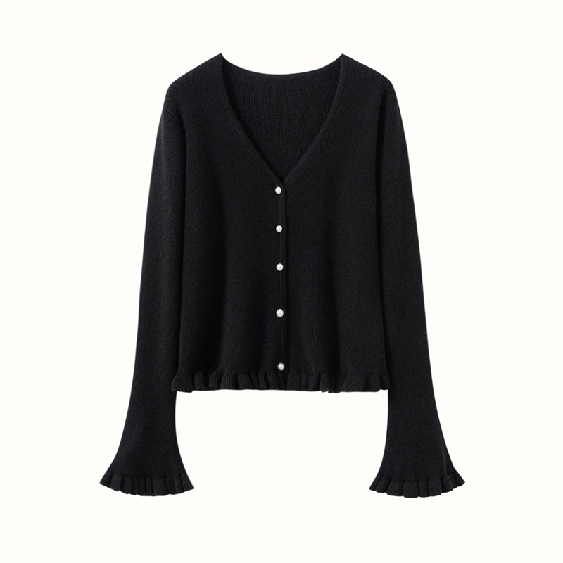 新款木耳边喇叭袖开衫女山羊绒衫欧货v领针织短款小香风毛衣外套
