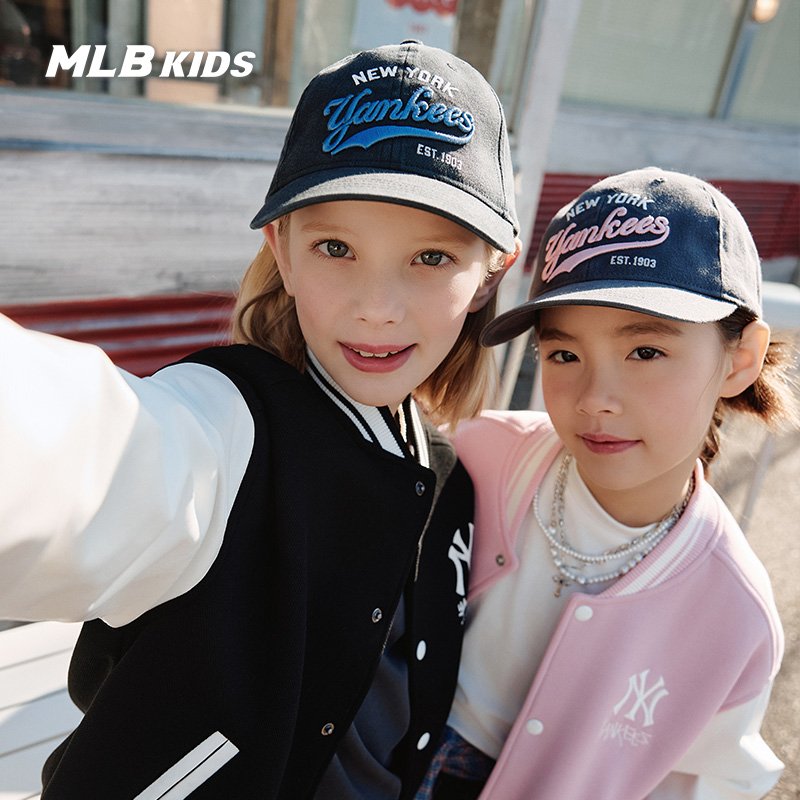 MLB儿童官方男女童时髦百搭精致字母刺绣复古棒球帽25秋冬新款
