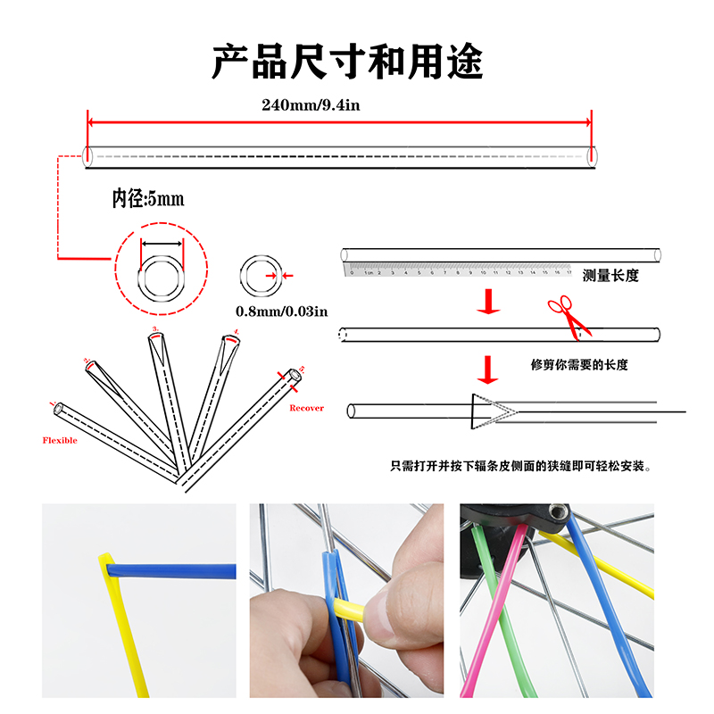 125踏板车摩托车自行车辐条改装装饰 装饰轮毂辐条套管彩色辐条套