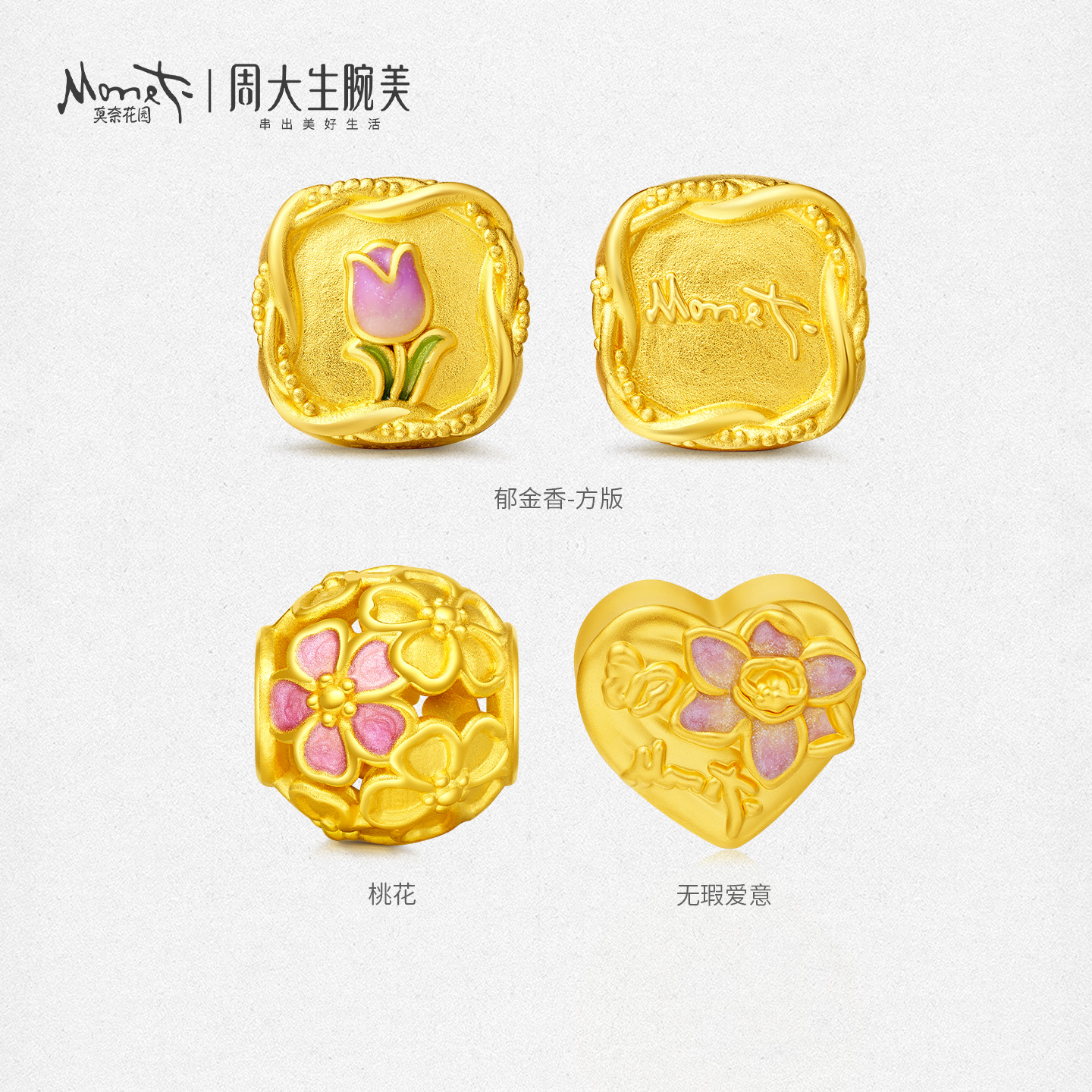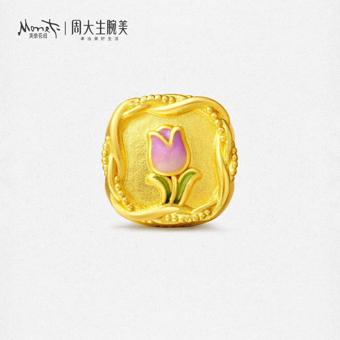 周大生腕美黄金转运珠女款足金玫瑰花莫奈花园郁金香手链送女朋友