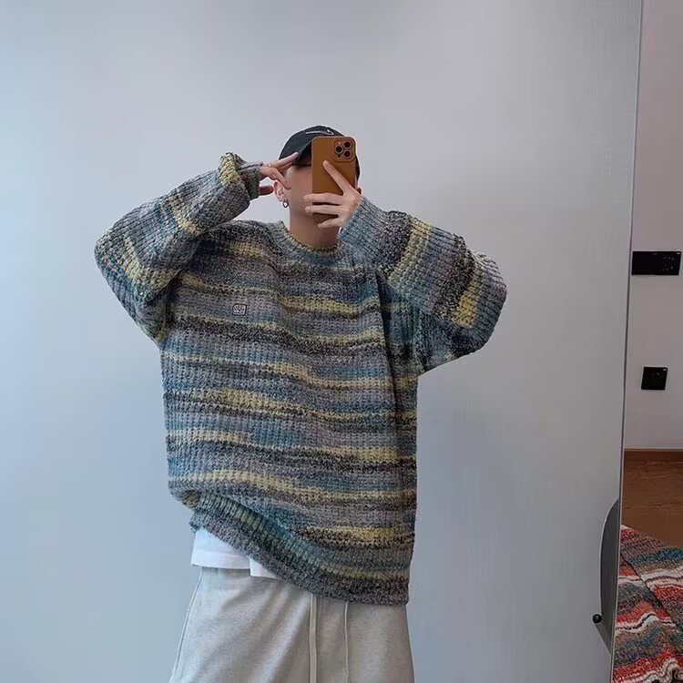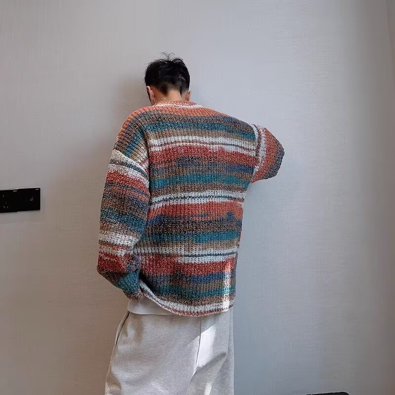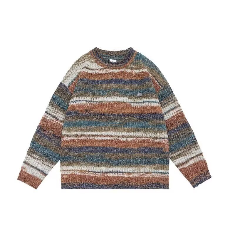 美式潮牌多巴胺彩条毛衣男女情侣秋冬季套头加厚针织衫上衣外套潮