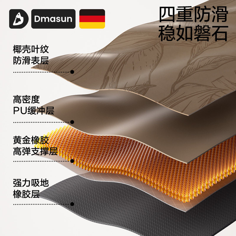 DMASUN「叶语」天然橡胶瑜伽垫椰壳磨砂专业防滑减震家用健身pu垫