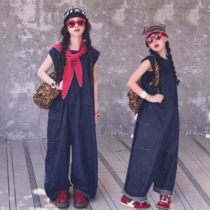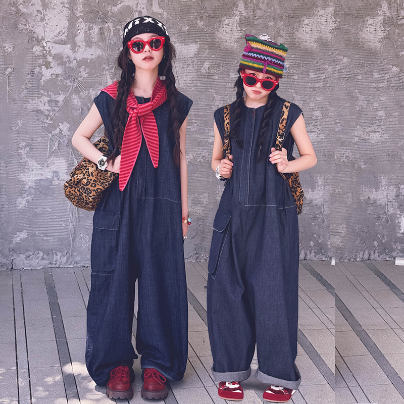 冷大娘男女中大童机车风纯棉工装高阶水洗牛仔连体裤走秀亲子款