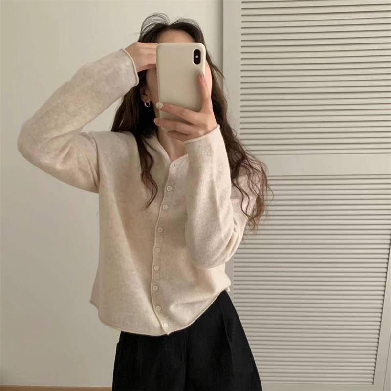 全羊毛无缝一体纯色连帽针织开衫外套女秋季新款韩版简约百搭毛衣