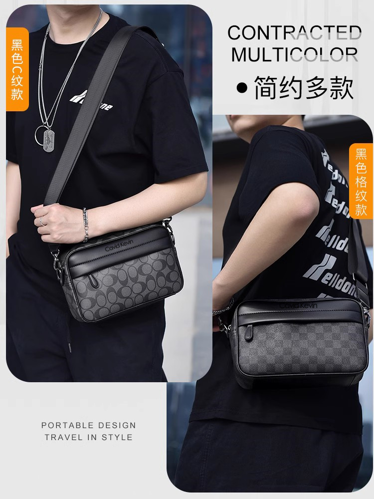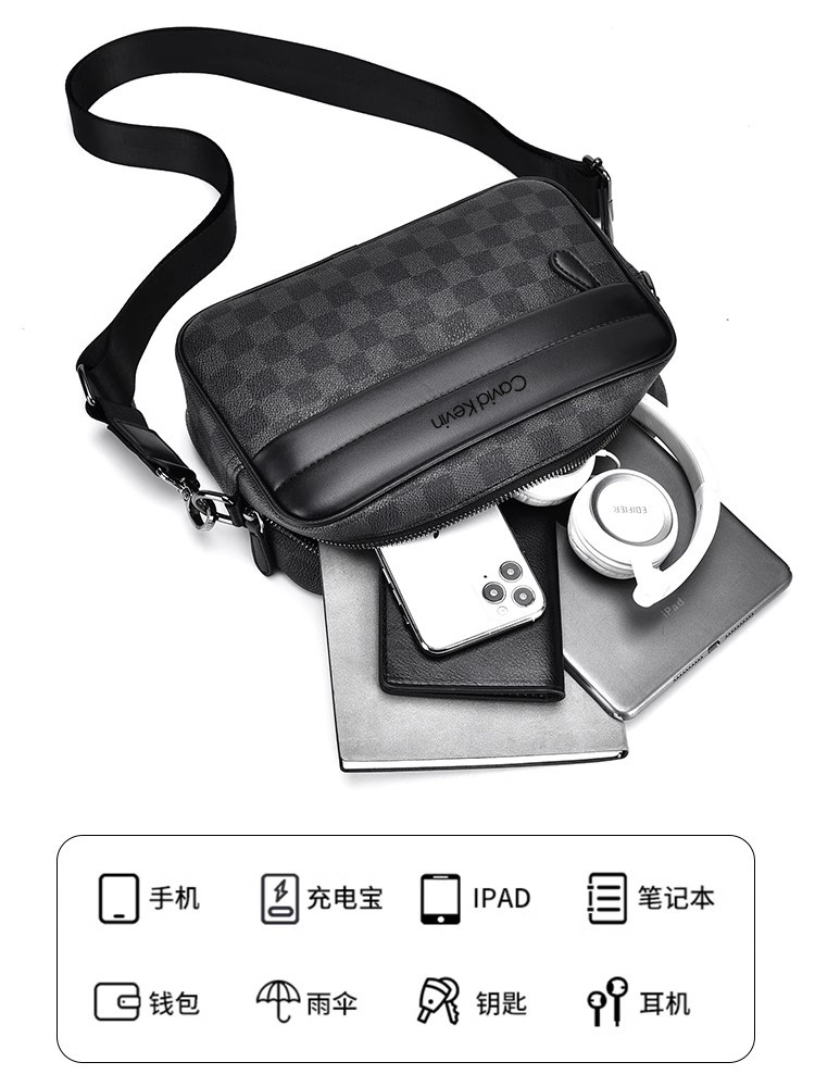 Cavid Kevin新款潮流格子邮差斜挎包男士单肩包小胸包手机包腰包
