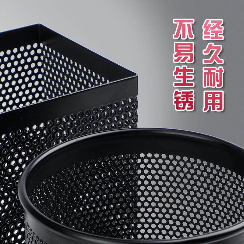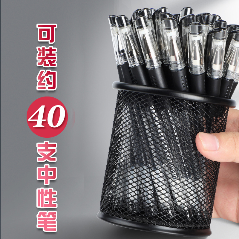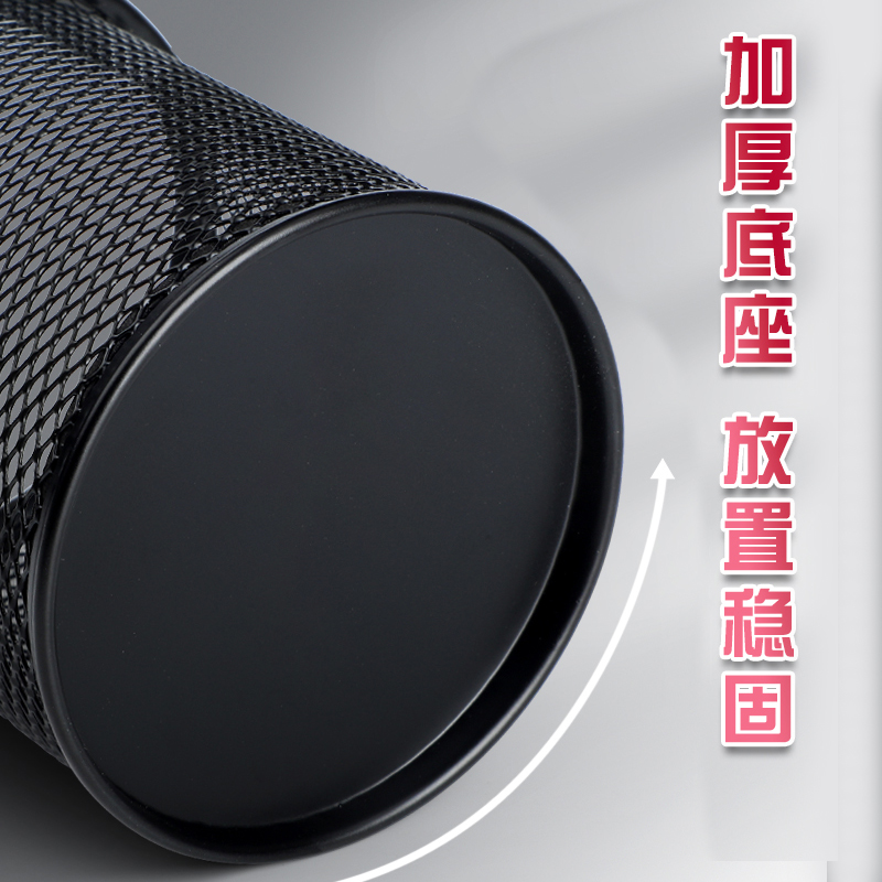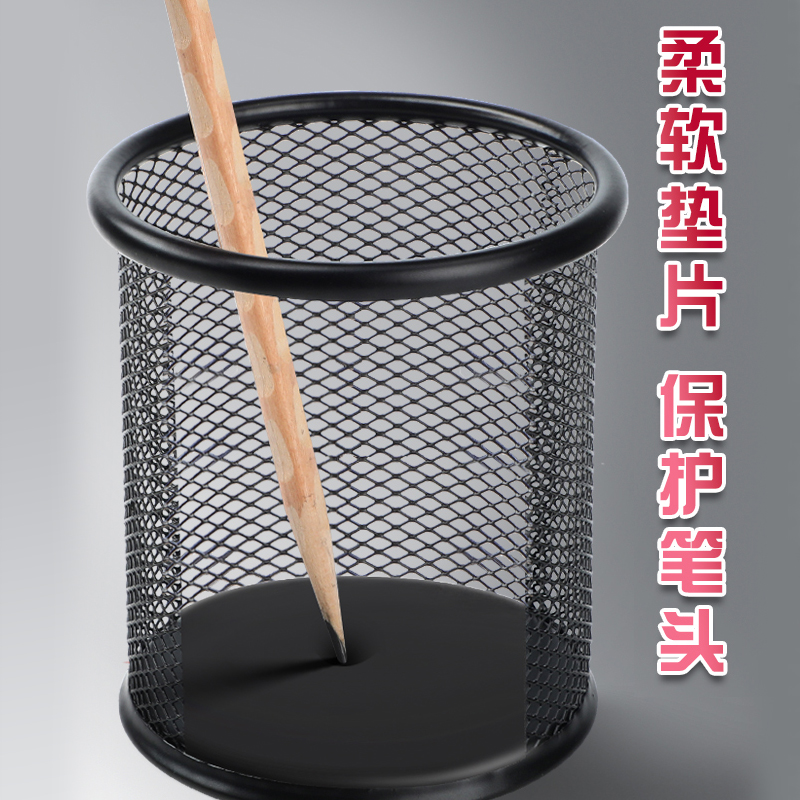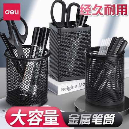 得力笔筒圆形金属网格笔插文具桌面收纳盒创意时尚黑色铁网笔座大容量多功能简约办公用品