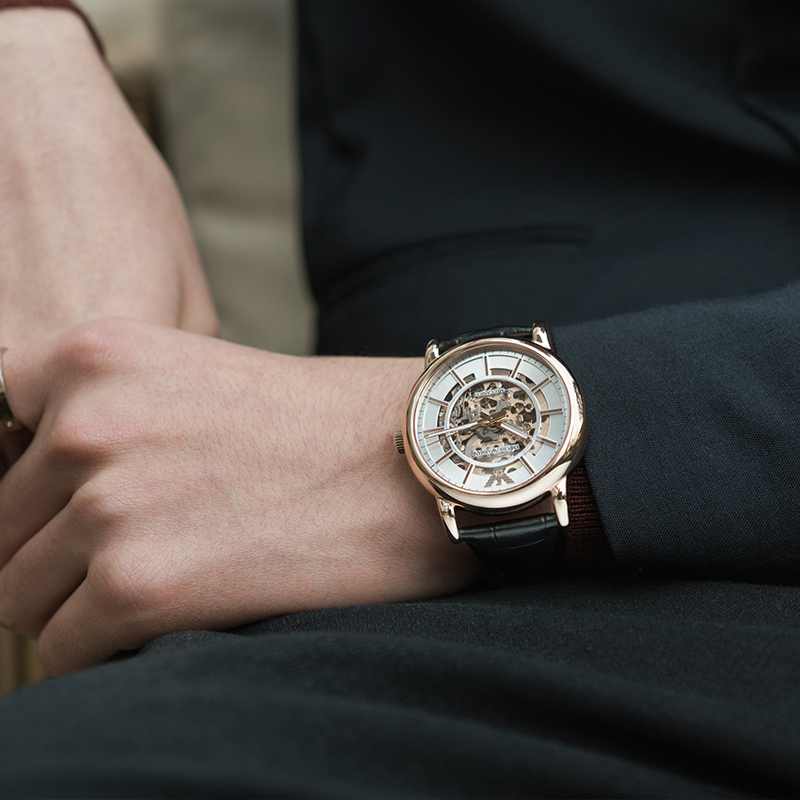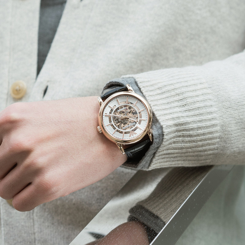 阿玛尼男士机械镂空腕表