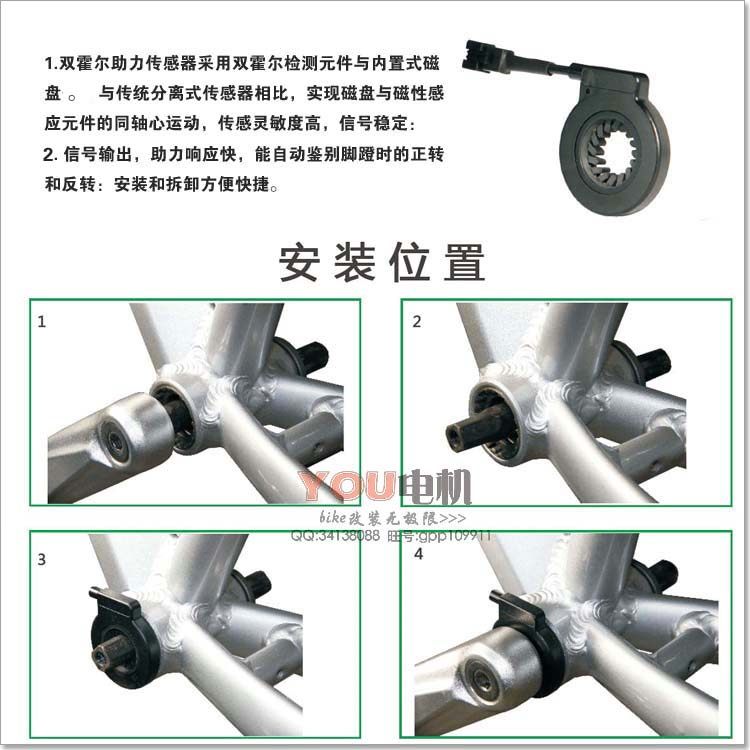 电动自行b车助力器助力传感器双霍尔一体昆腾电子控制器中轴加速
