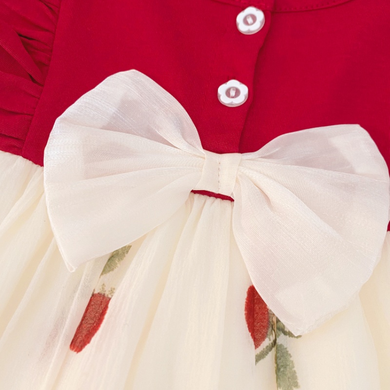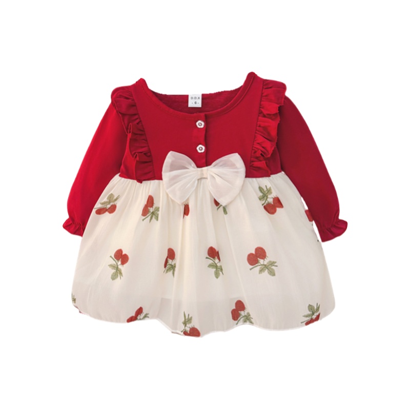 周岁女宝礼服女童秋装连衣裙小童秋季红色生日裙子樱桃公主裙3岁0