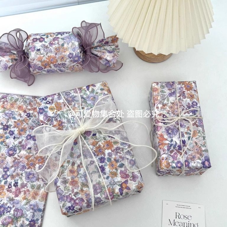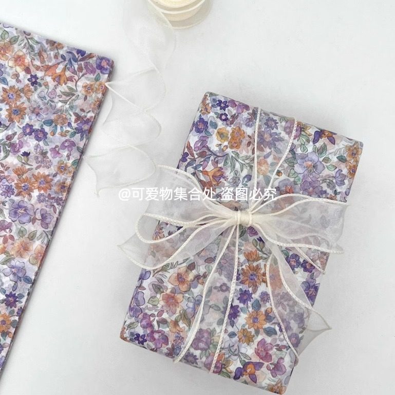薄款紫色花花雪梨纸礼物包装纸礼品纸服装相框打包纸拍照背景纸