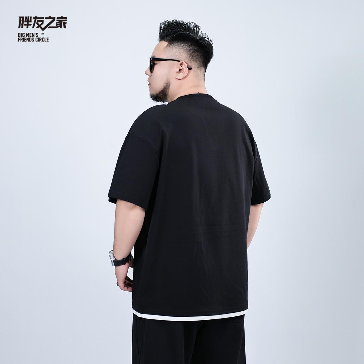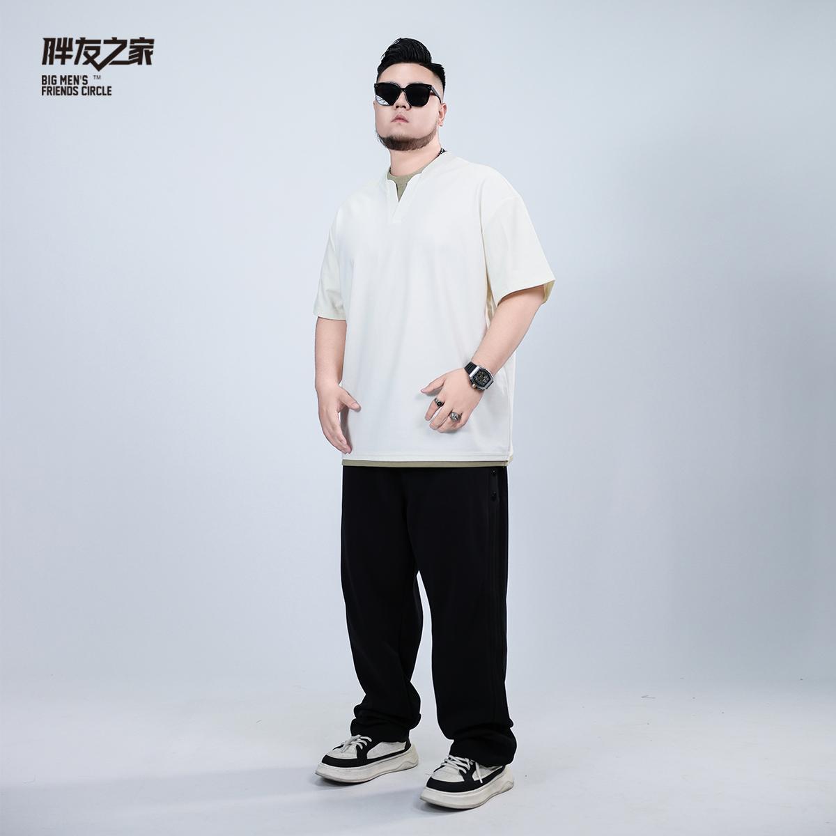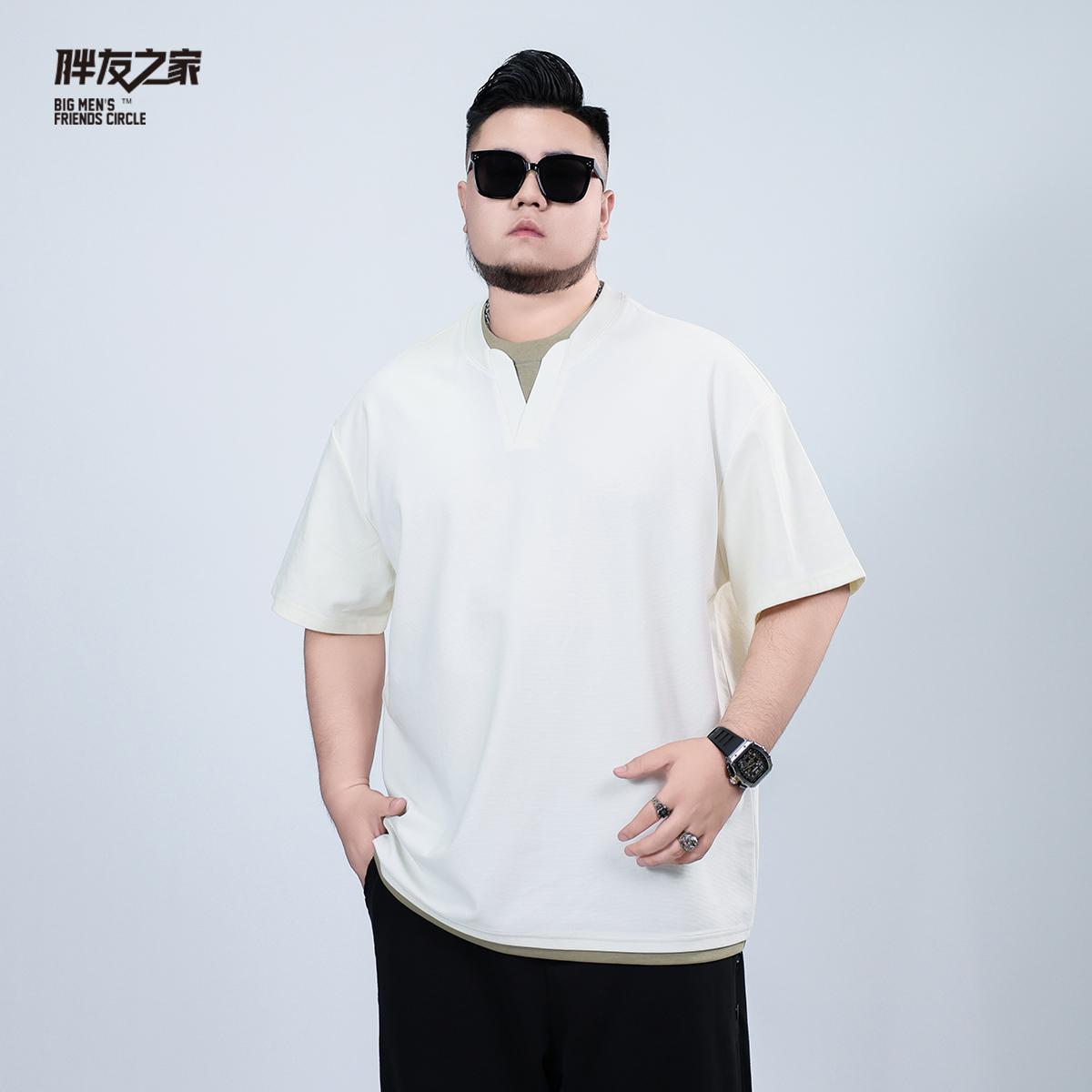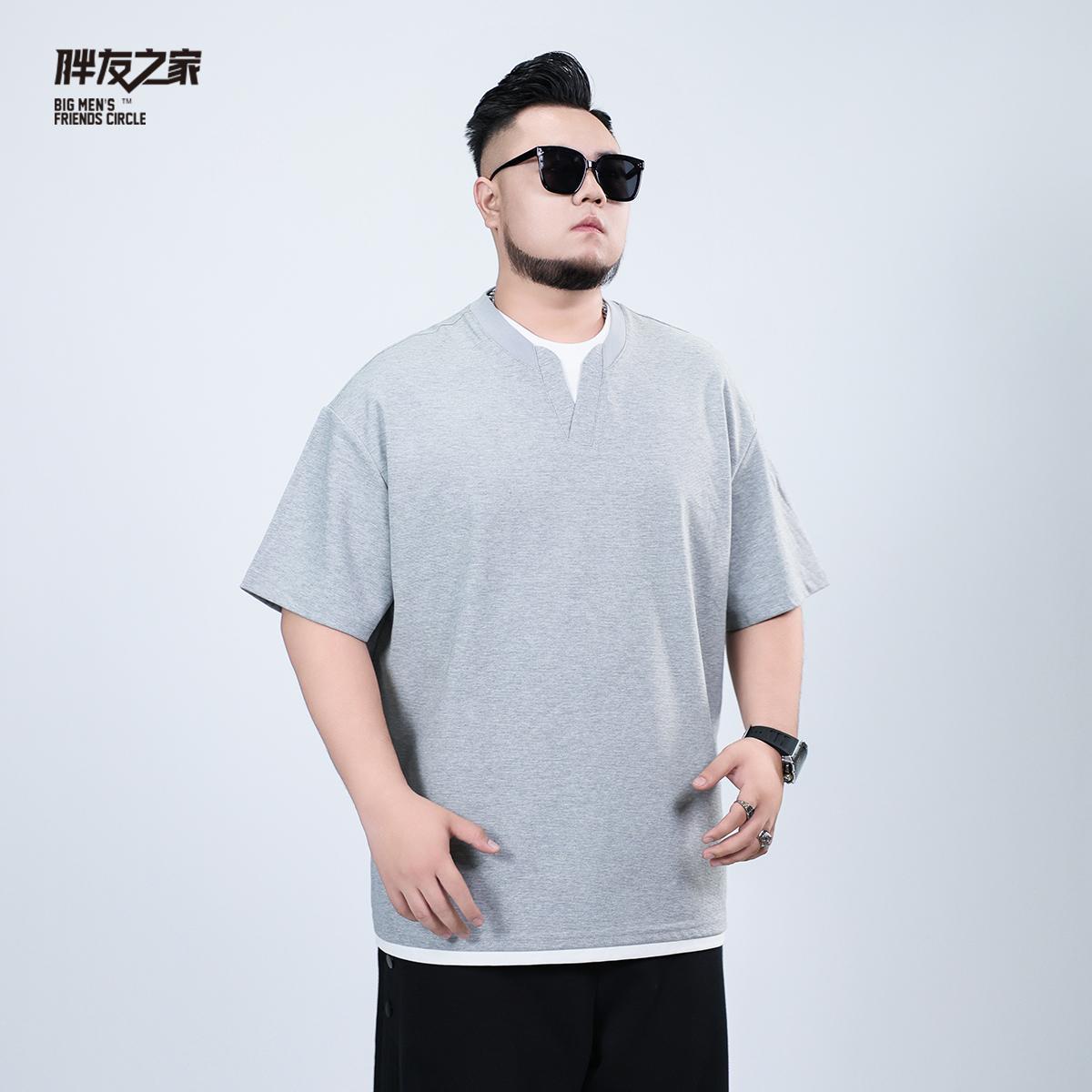 【假两件】加肥加大码V领短袖t恤男2025新款夏季宽松百搭胖子上衣