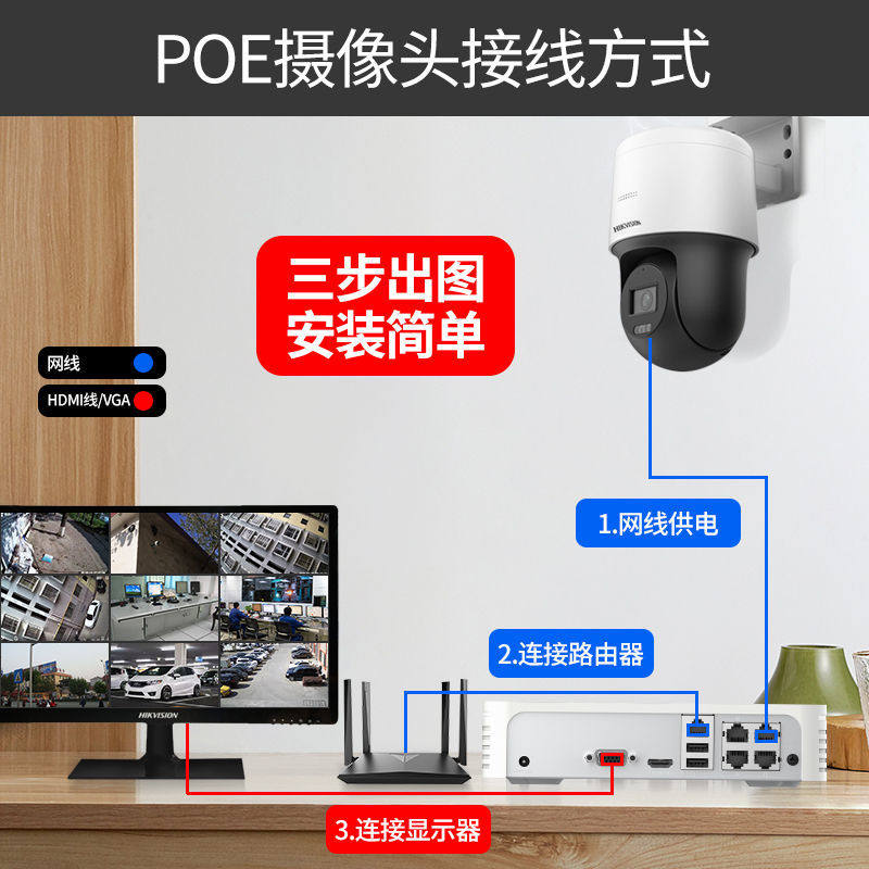 海康威视400万POE球机3Q140MY-TE白光全彩室外监控摄像头双向语音