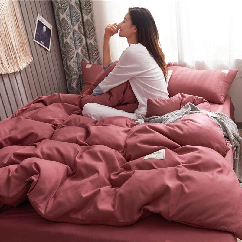 日式双拼纯色四件套水洗棉学生宿舍三件套床笠款40支床上用品
