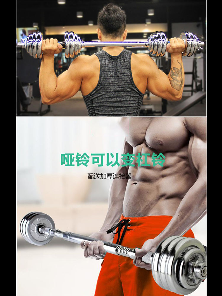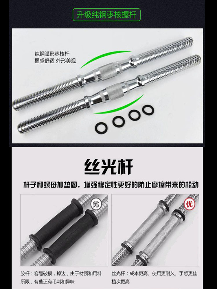 枣核丝杆纯铁电镀哑铃男士健身家用器材可调节50kg20女杠铃套装钢