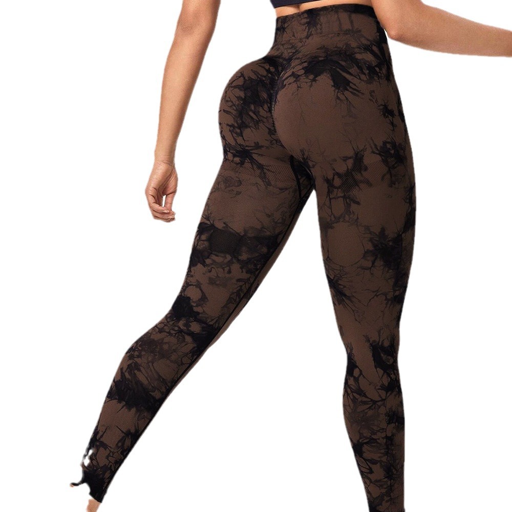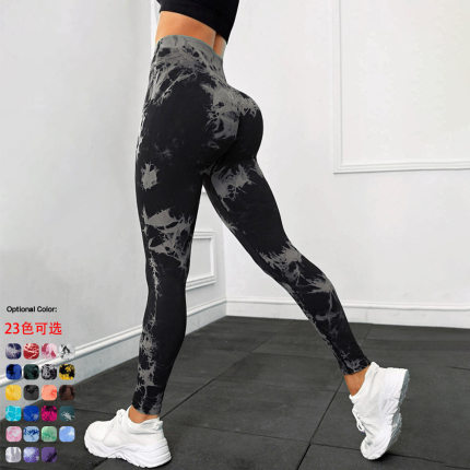 无缝扎染瑜伽裤高腰弹力健身裤跑步速干高腰九分蜜桃臀运动紧身裤