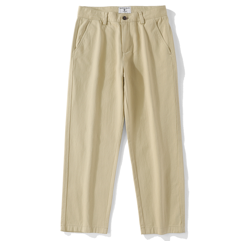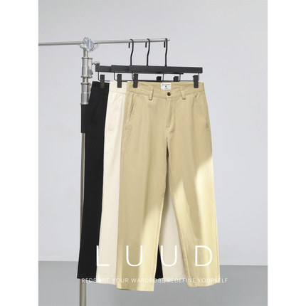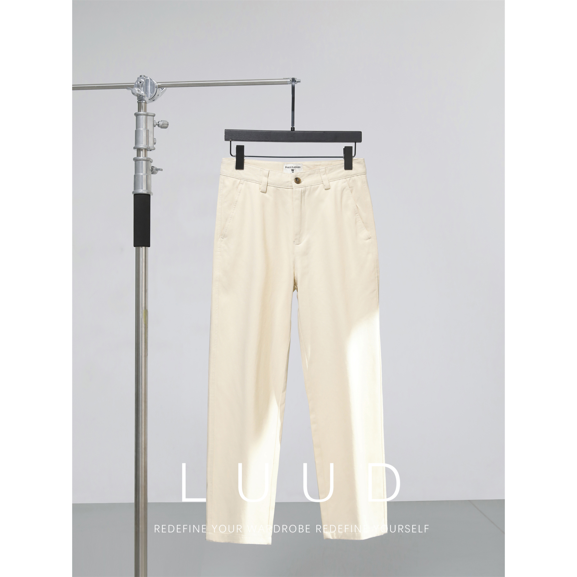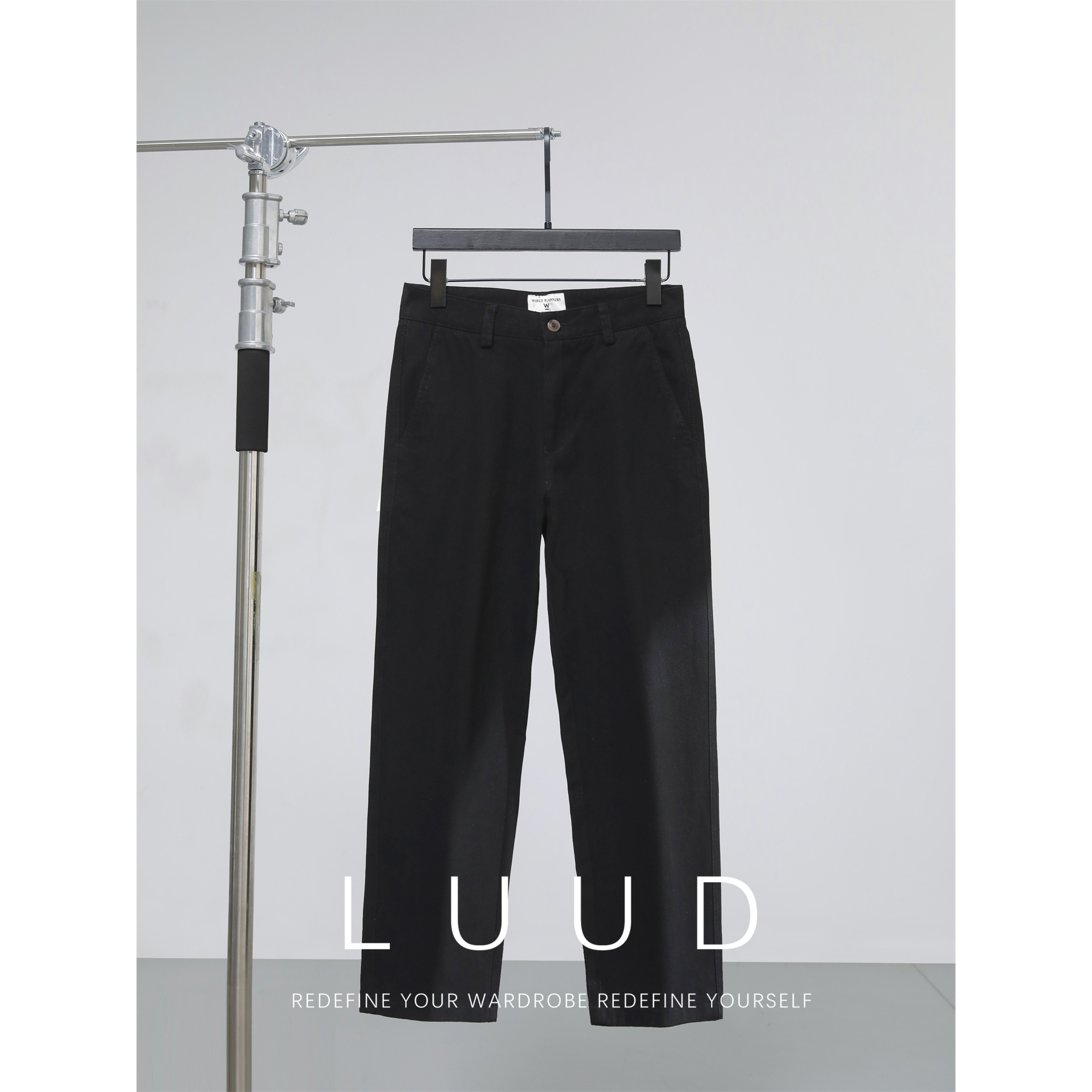 LUUD 男夏极简纯色斜纹理休闲裤时尚100纯棉立体裁剪直筒牛仔长裤