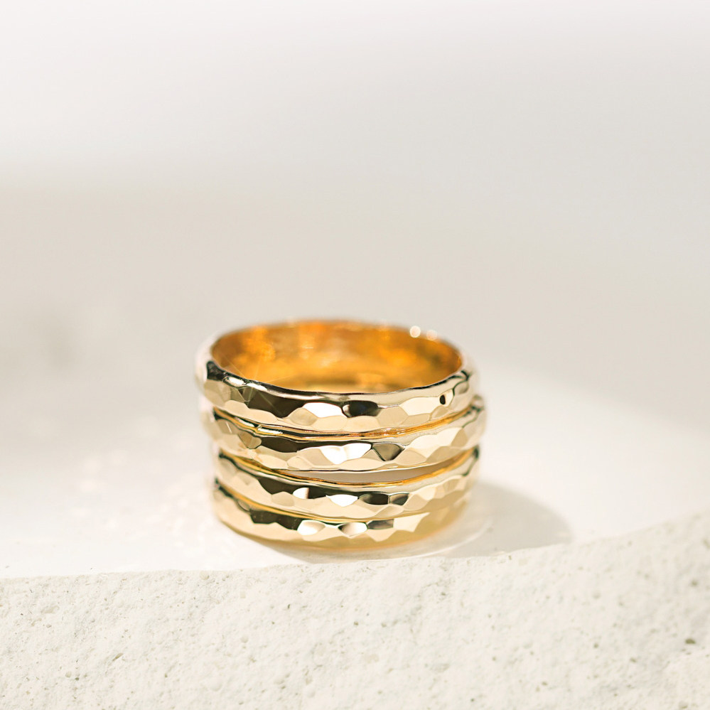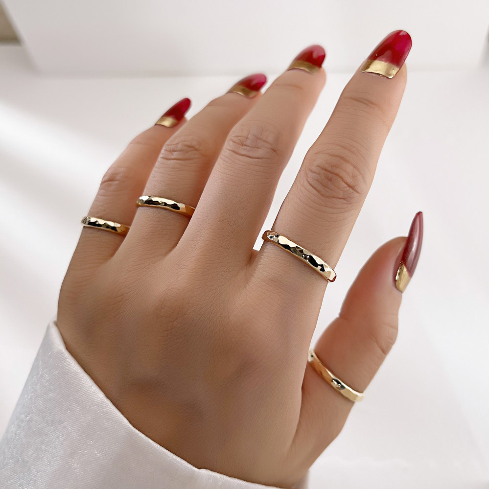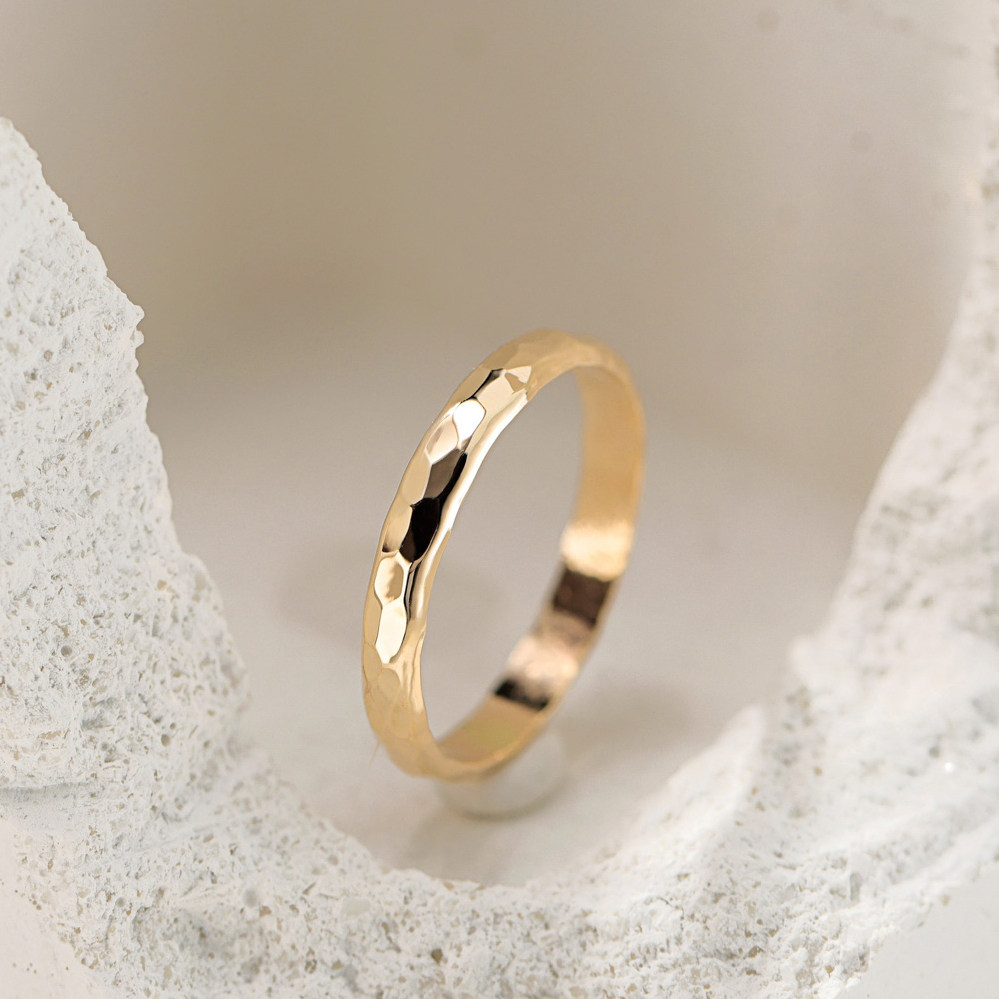 14K包金手工锤纹戒指环女食指 欧美高级感戒指 简约个性冷淡风