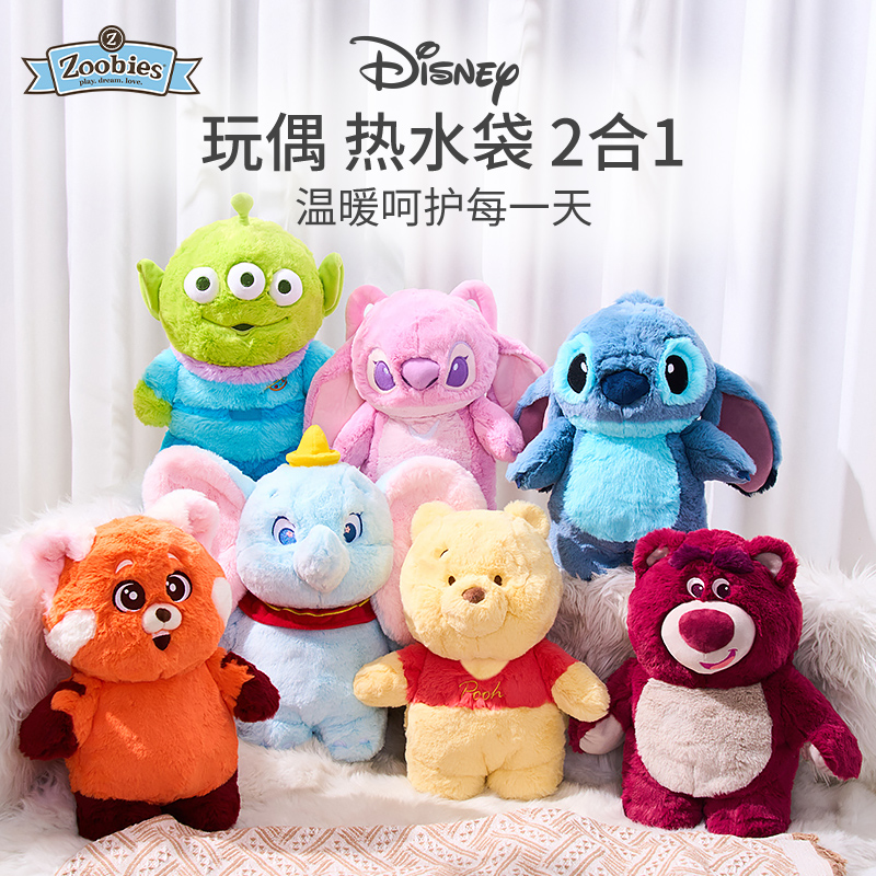zoobies迪士尼香味草莓熊史迪奇安琪热水袋玩偶2合1温暖守护冬日