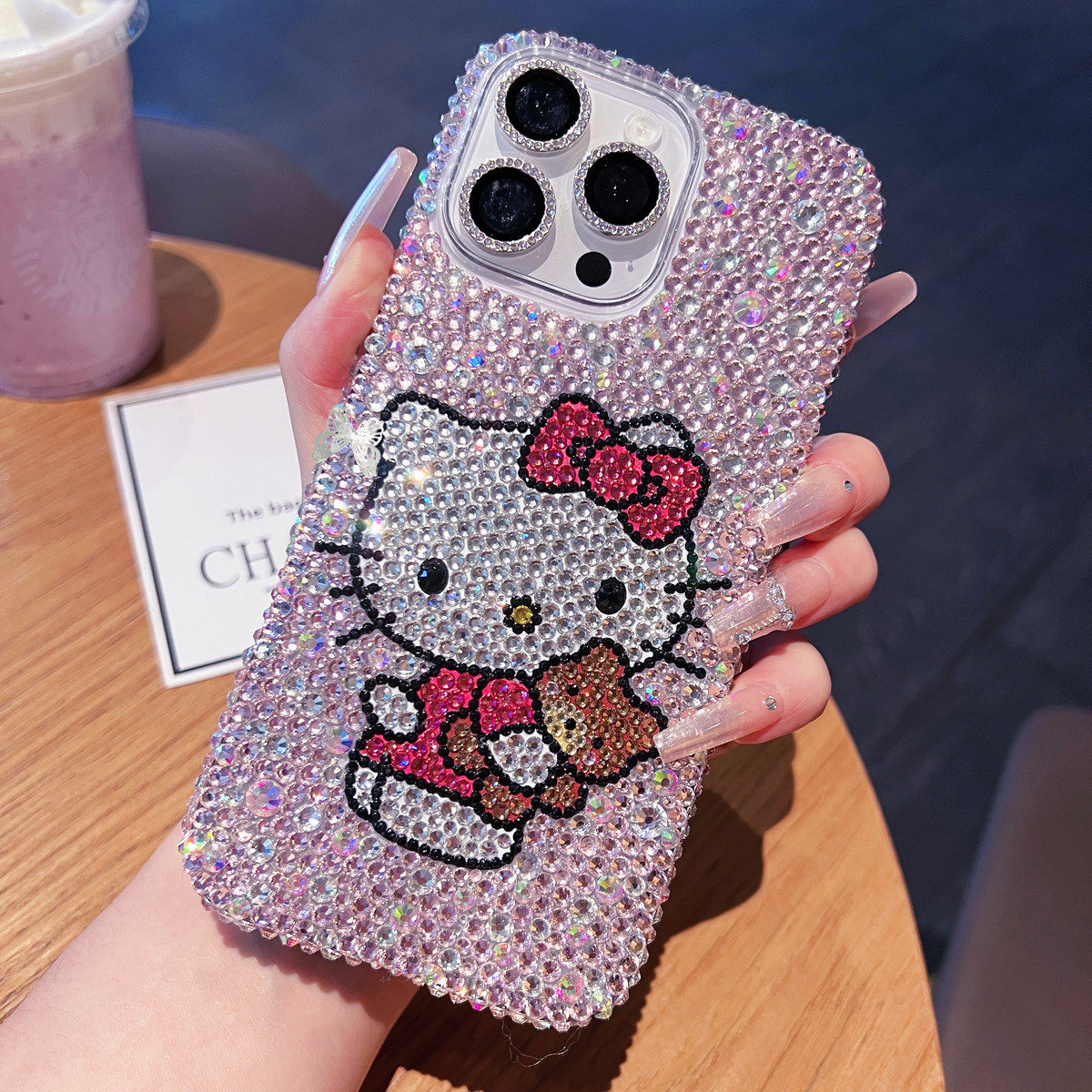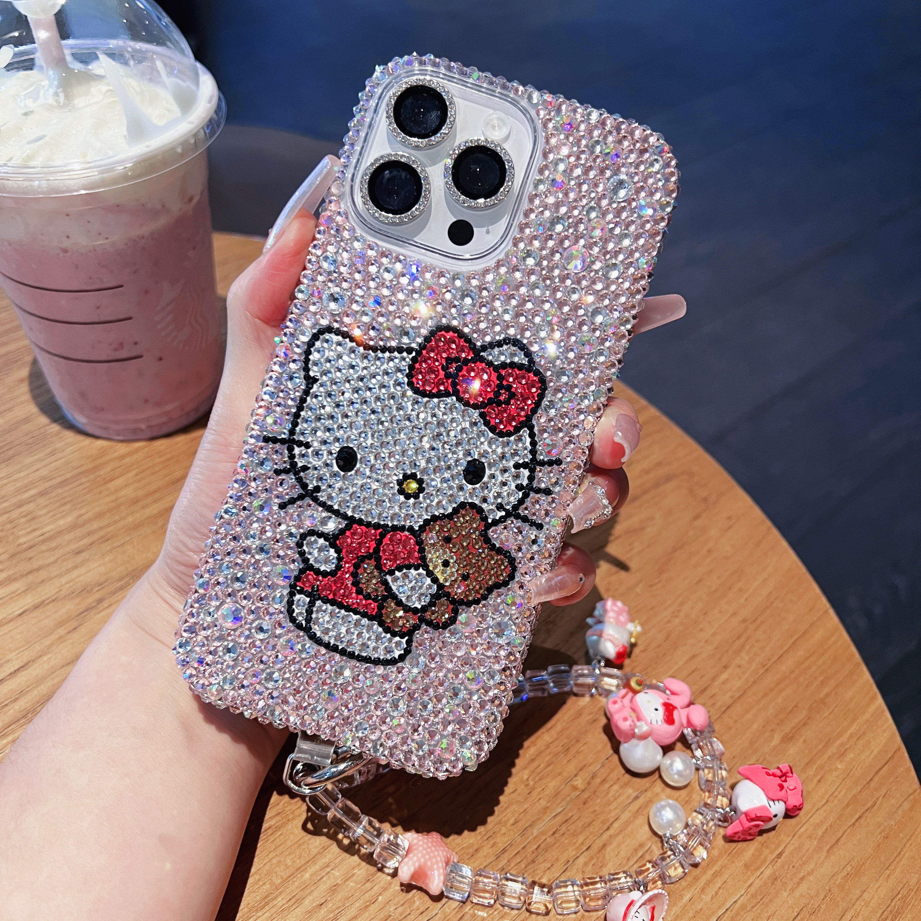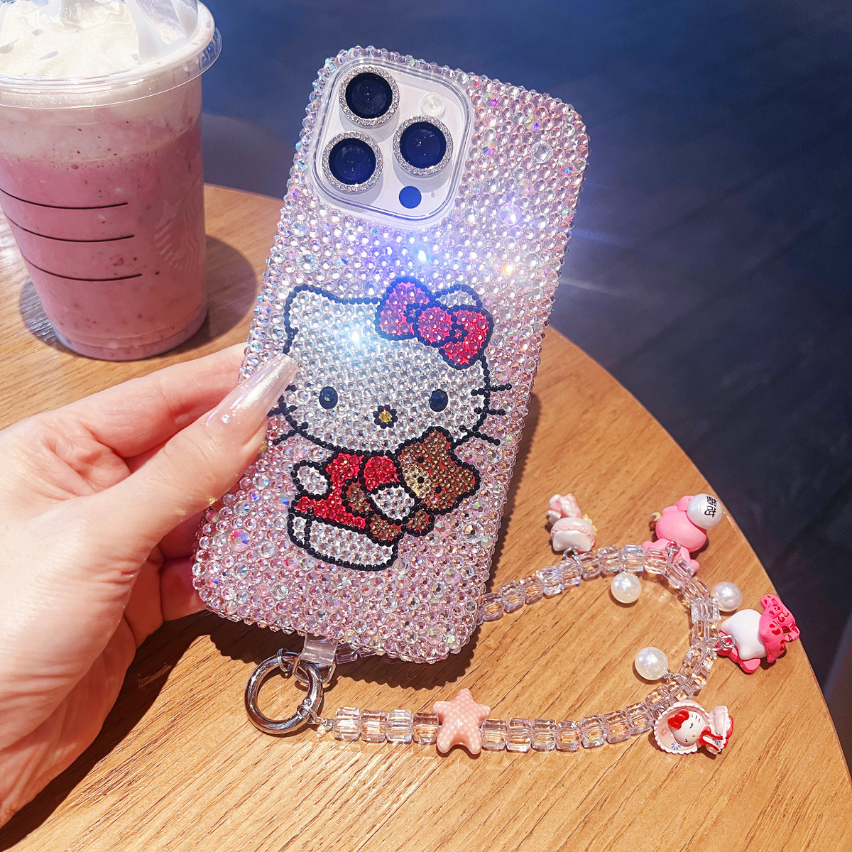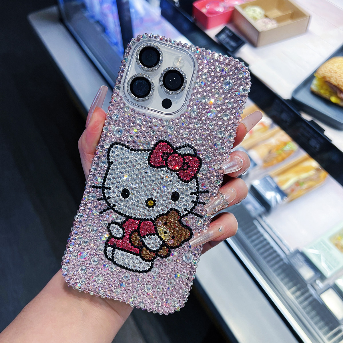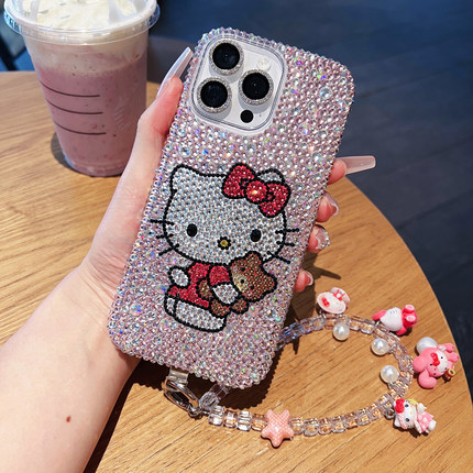 苹果17ProMax网红同款Kt带钻手机壳iPhone16奢华水钻可爱卡通猫15plus全包14防摔13mini保护套适用12链11女XS