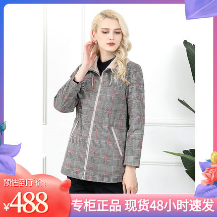 千瑶立领格纹双面外套女士风衣新款春装中年时尚妈妈连帽洋气上衣