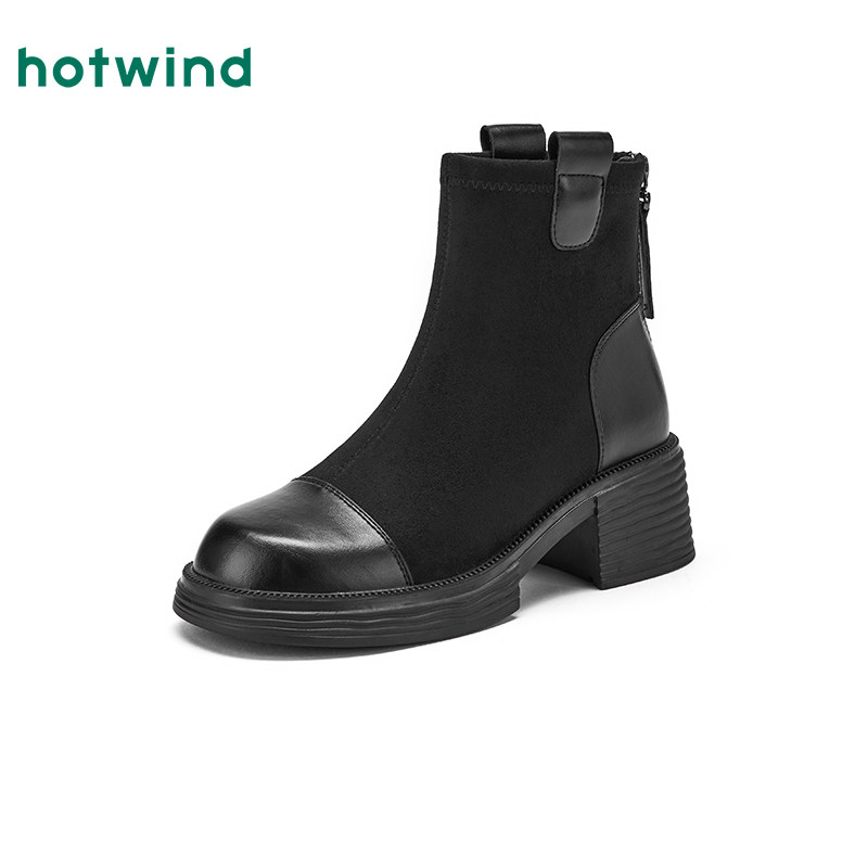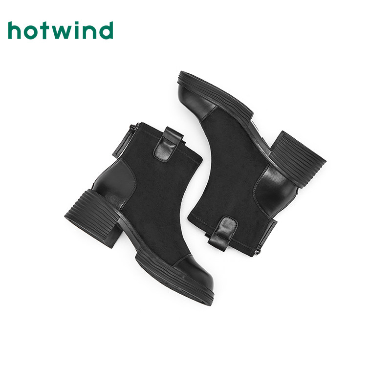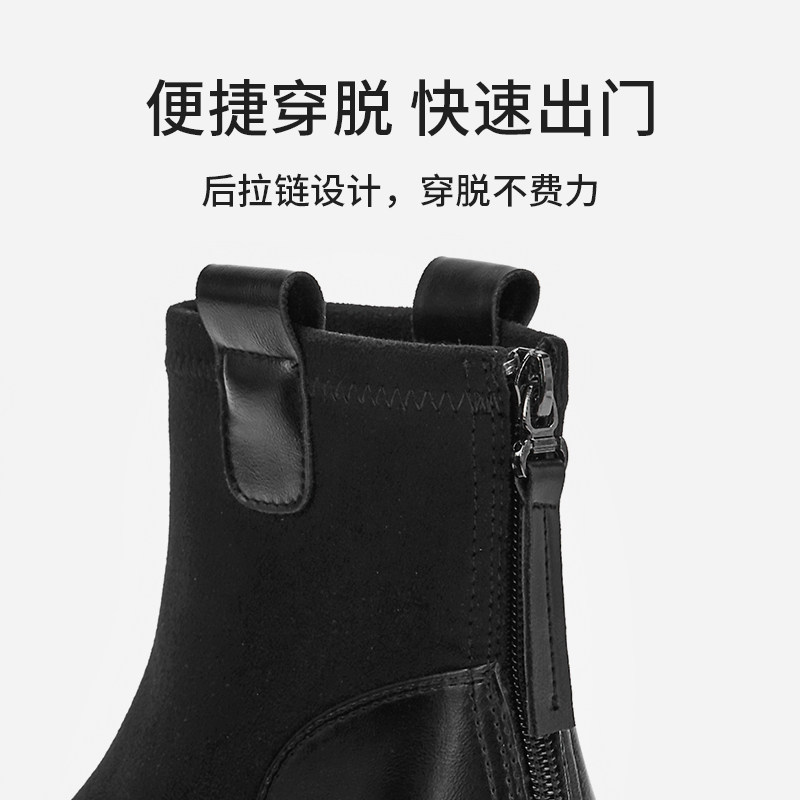 热风高跟时装靴2025年冬季新款美拉德棕色短靴百搭马丁靴子女鞋