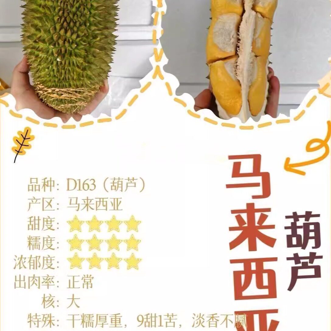 北马榴【树熟液氮】小品种槟城D163葫芦榴莲锁鲜当季新果老饕最爱