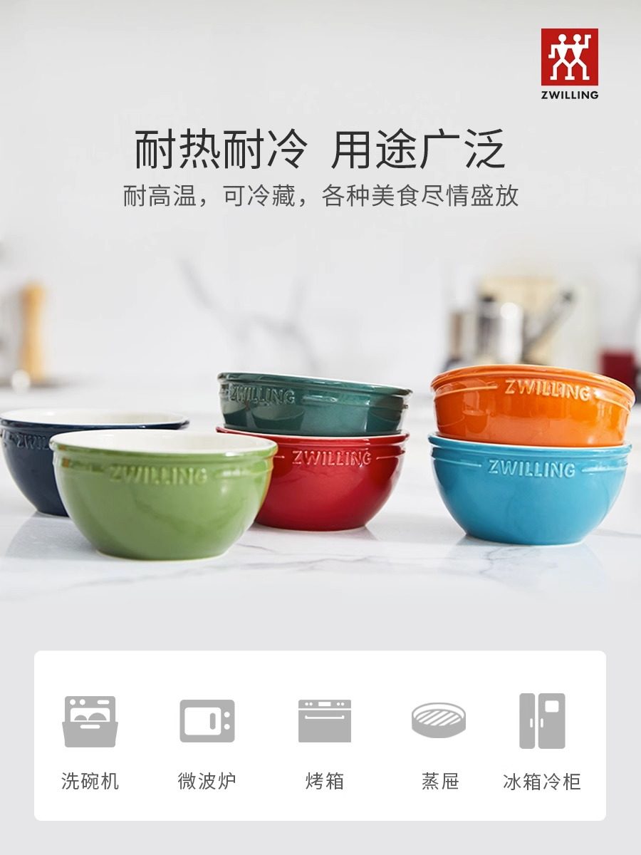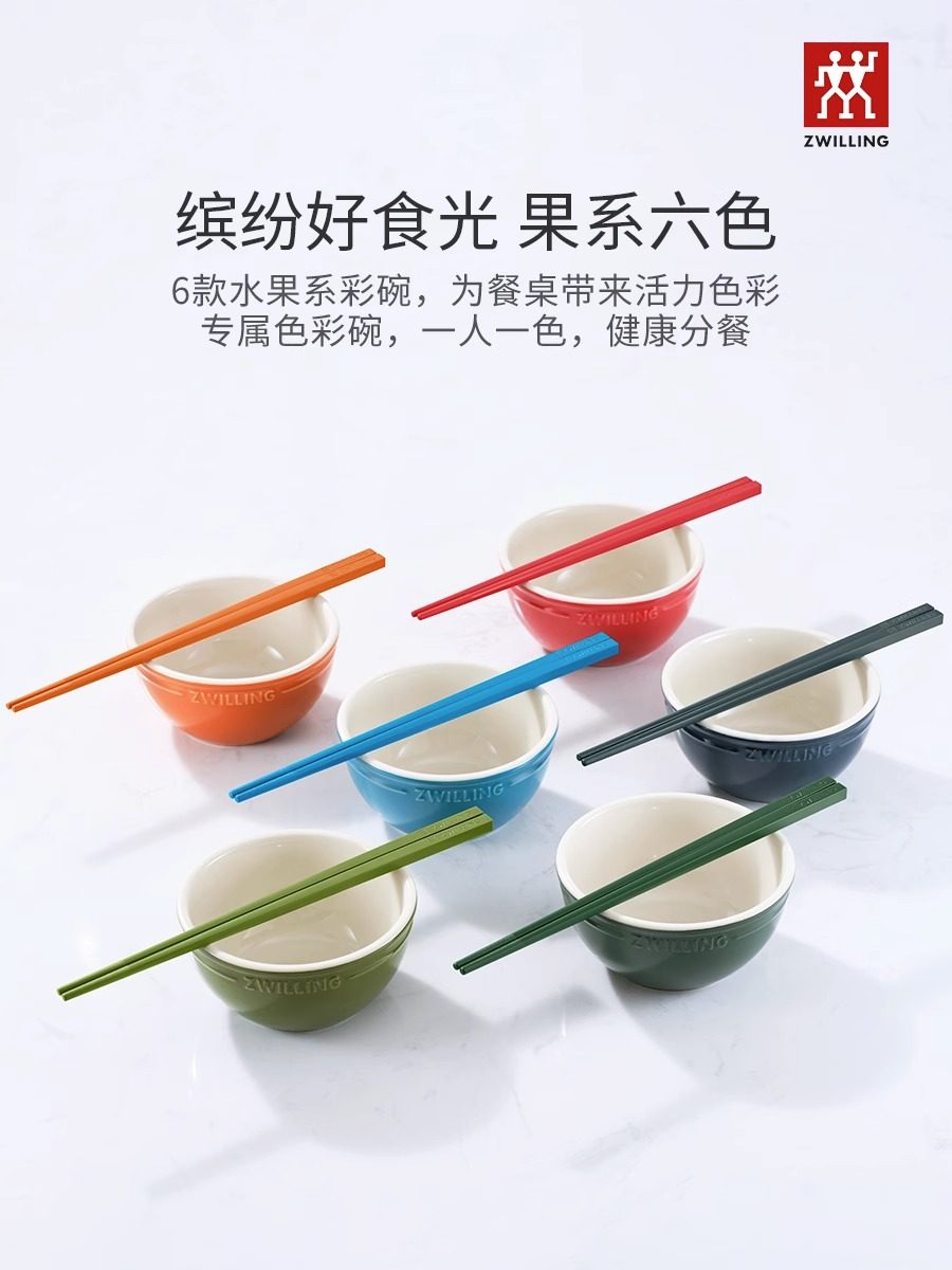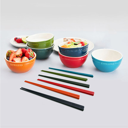 双立人圆形六色碗筷家庭套装家用陶瓷碗筷组合餐具套装多色可选