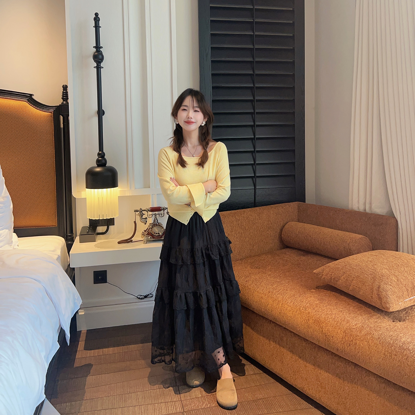 小小家 小个子小码蕾丝花边拼接半身裙25秋新款A字甜美高腰中长裙
