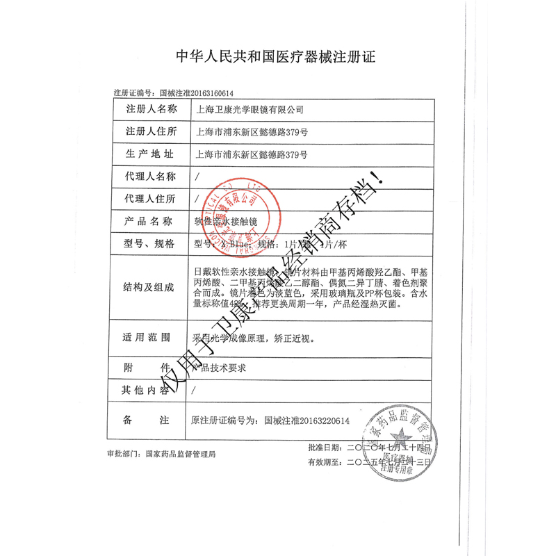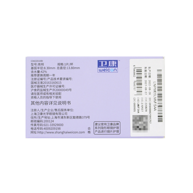 【官旗同款】1片卫康亮明隐形近视眼镜一年抛高度数透明镜片正品
