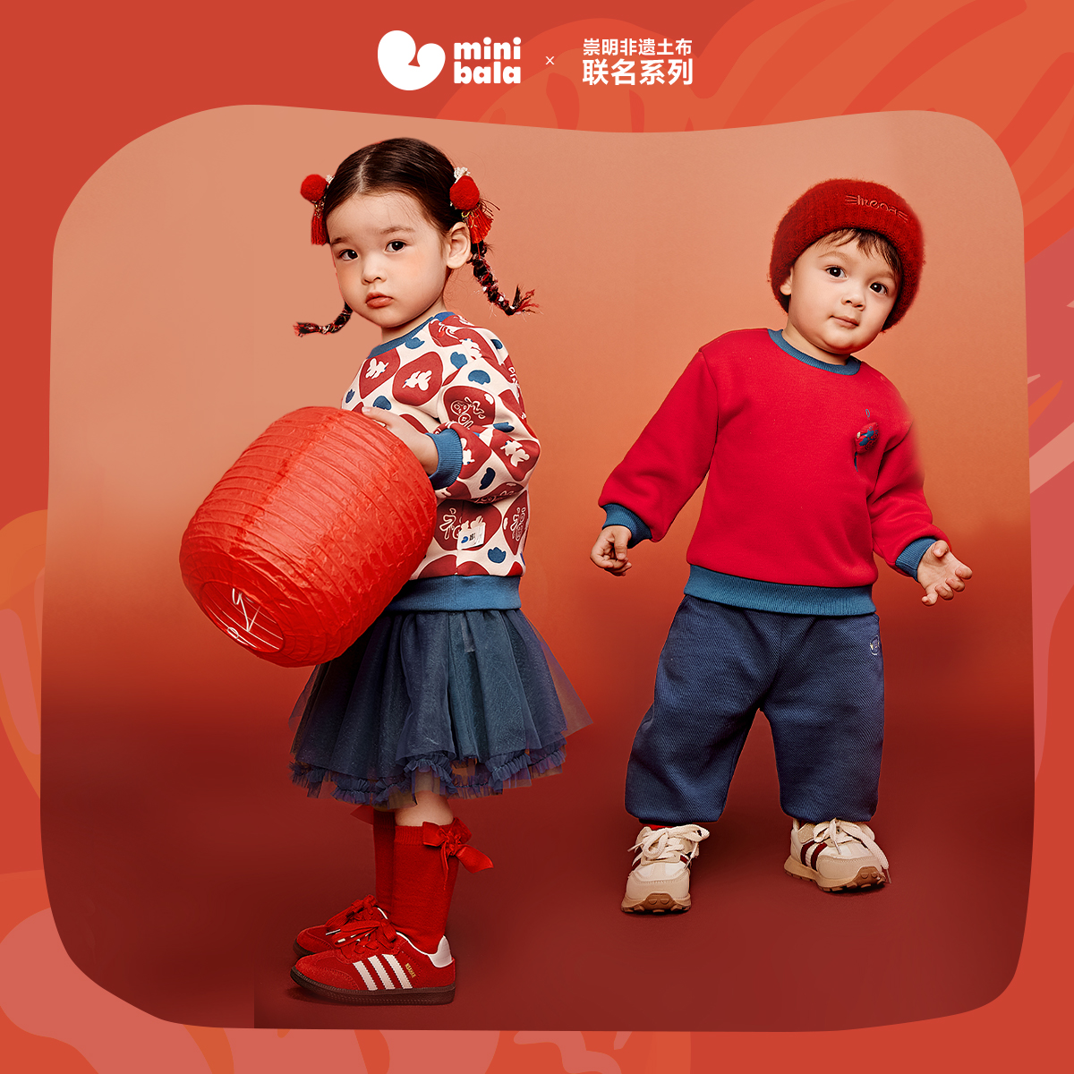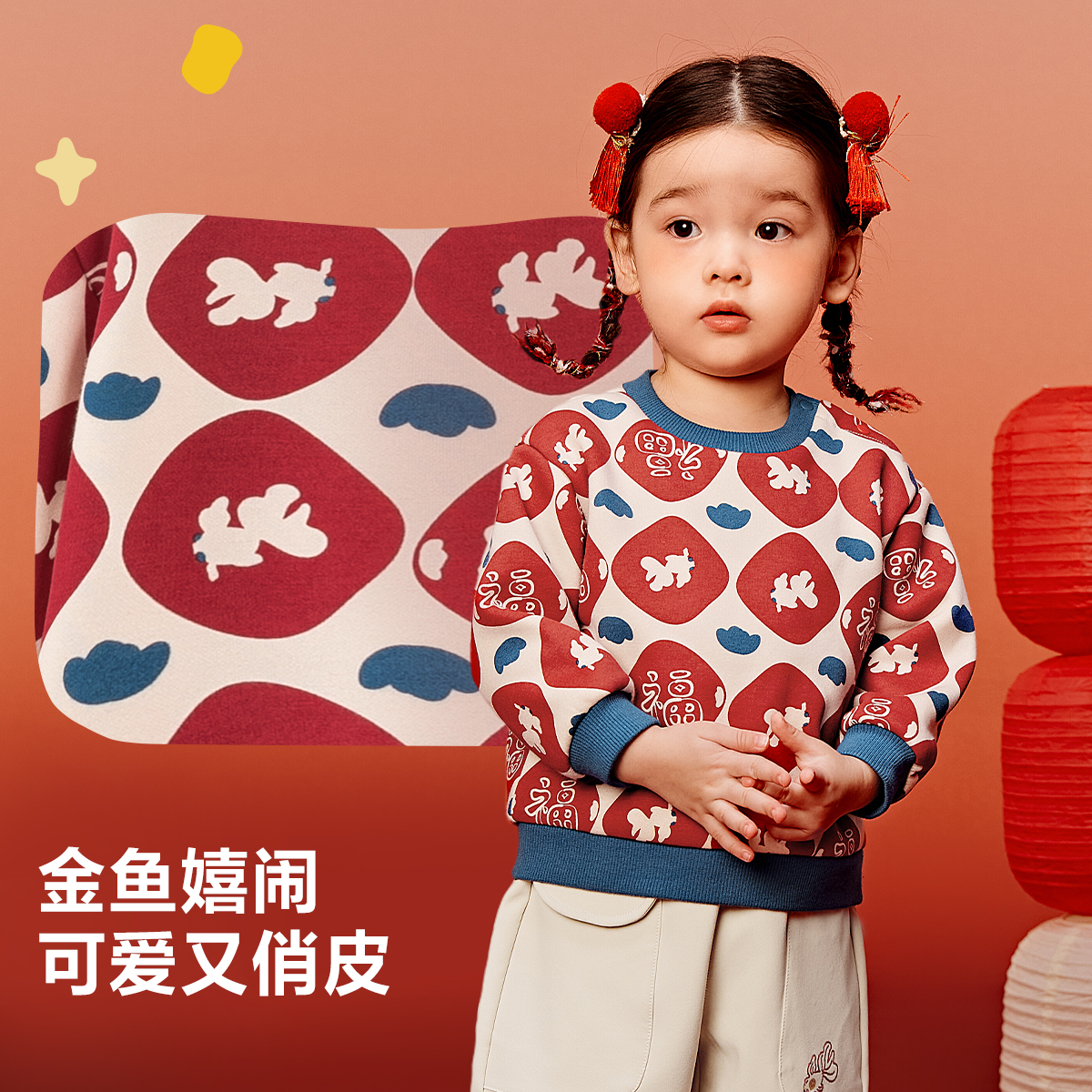 【非遗联名】迷你巴拉巴拉男女童卫衣冬春加绒长袖上衣2025年新款